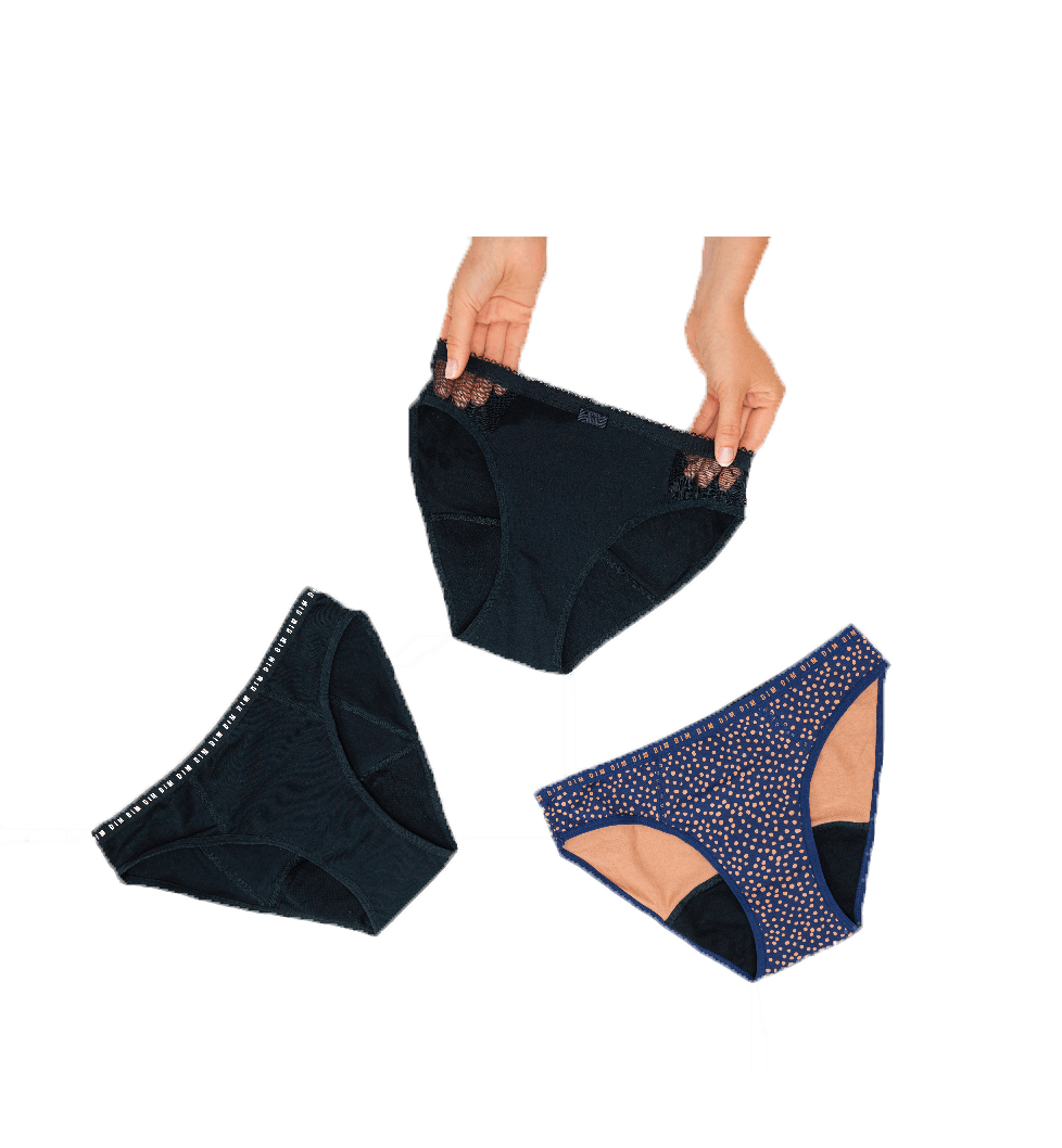 Les culottes menstruelles DIM PROTECT sont réutilisables. Elles ont la durée de vie d'un sous-vêtement classique. Elles contribuent donc à la réduction des déchets en étant une alternative aux protections menstruelles à usage unique. Nous recommandons de rincer les sous-vêtements à l'eau froide puis de les laver à 30°C.