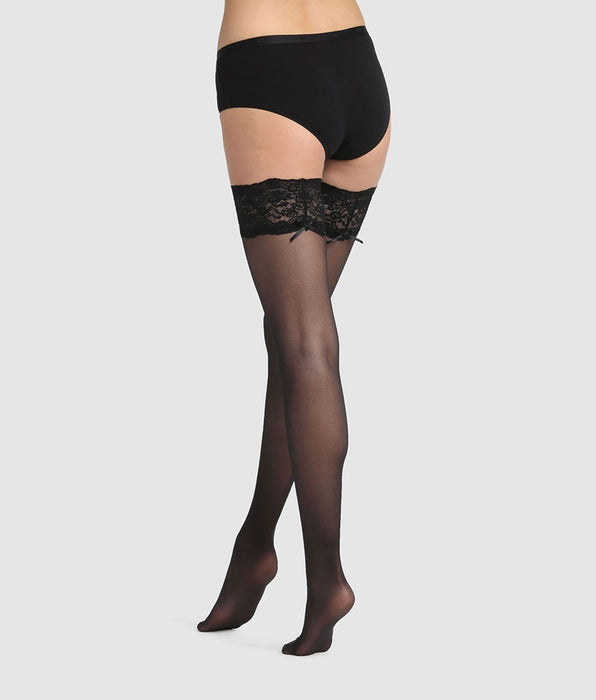 Sortez le grand jeu avec les sublimes bas autofixant semi-opaque noir jarretière dentelle Dim Up Sexy 25D !