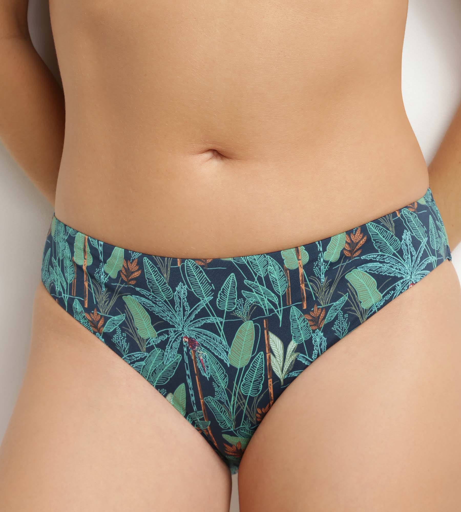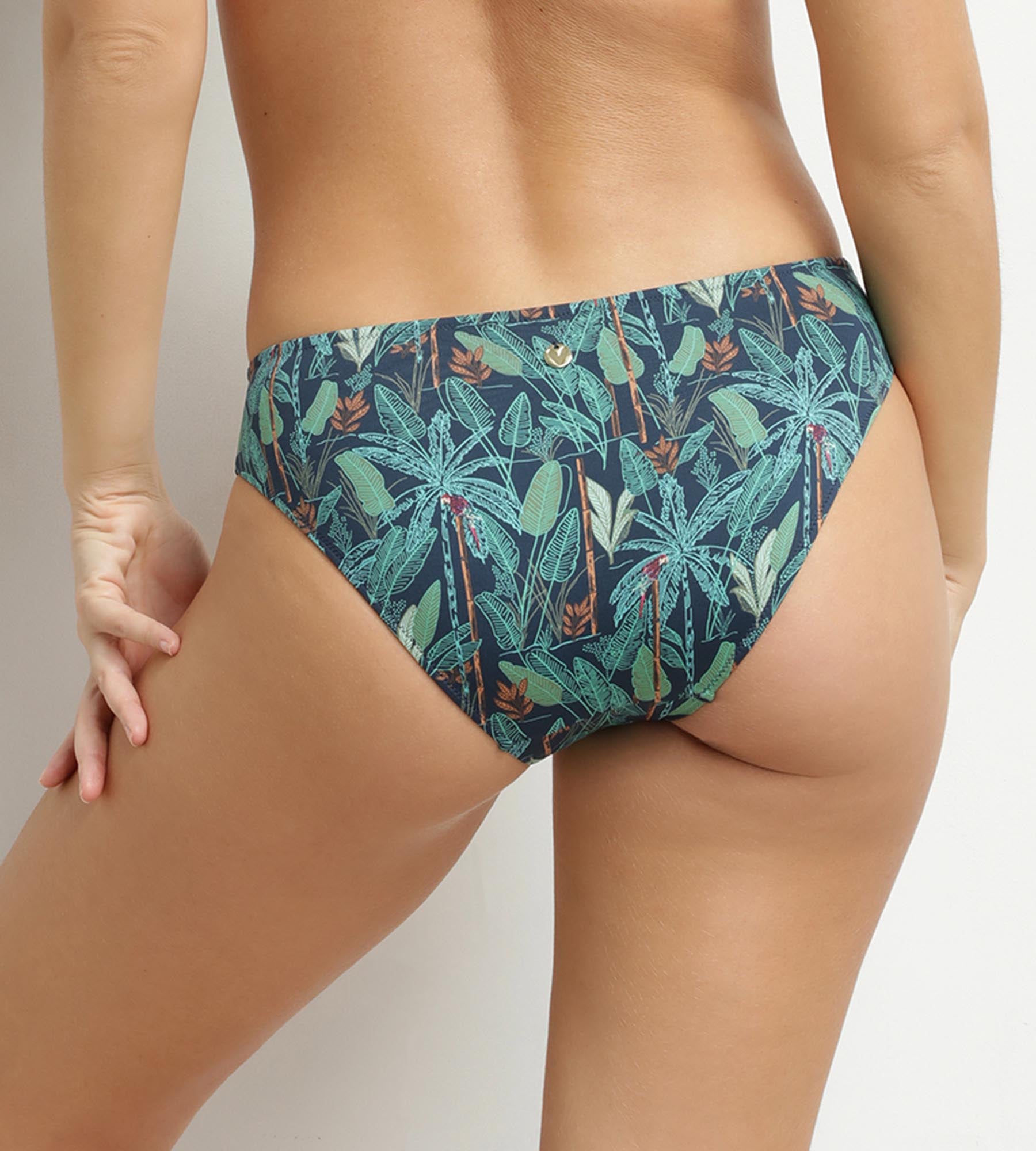Le bas de maillot de bain culotte Dim Swimwear Tropical mise sur une coupe classique et un imprimé exotique pour un look d’été féminin et naturel.