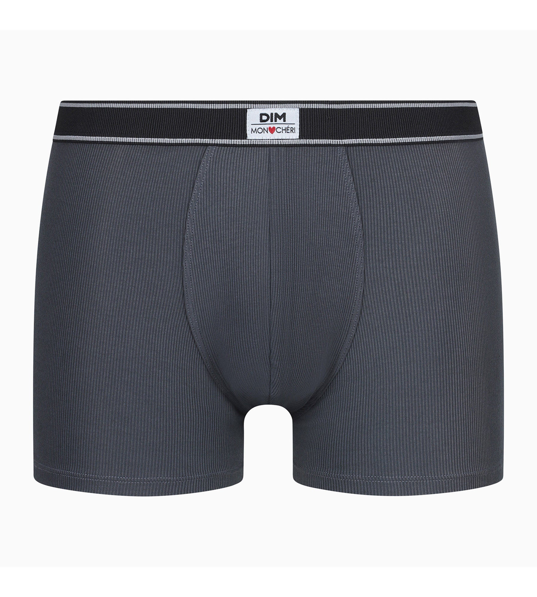 Boxer homme coton modal côtelé Gris Granit ceinture noire Dim Elegant