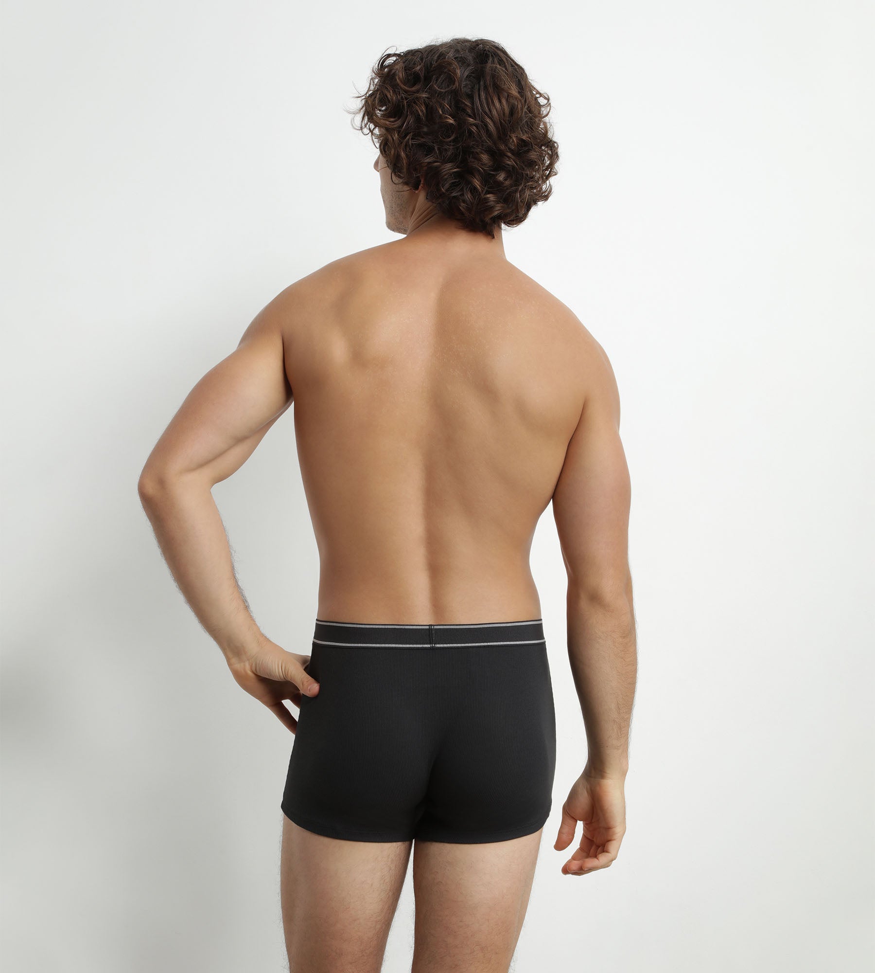 Misez sur une allure moderne et intemporelle avec le boxer homme en coton modal côtelé Noir Dim Élégant.