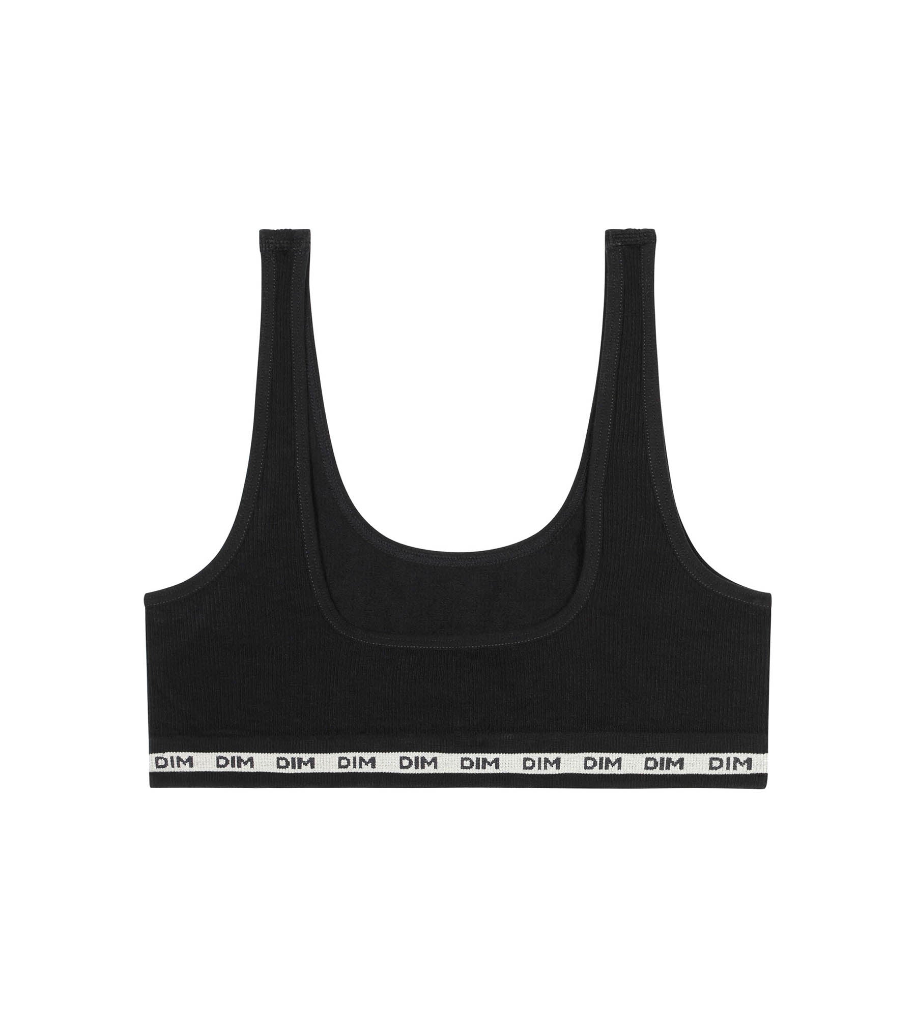 Conçue pour se sentir bien tous les jours, sans contrainte, la brassière fille Noire Dim Icons en matière côtelée extensible soutient sa poitrine sans effort ! Avec ses bords souples qui ne compriment pas la peau, et sa coupe enveloppante, notre brassière jeune fille est un cocon de douceur qui ne se voit pas ! On aime la bande Beige avec logo Dim minimaliste, qui donne une touche sport à sa lingerie adolescente.