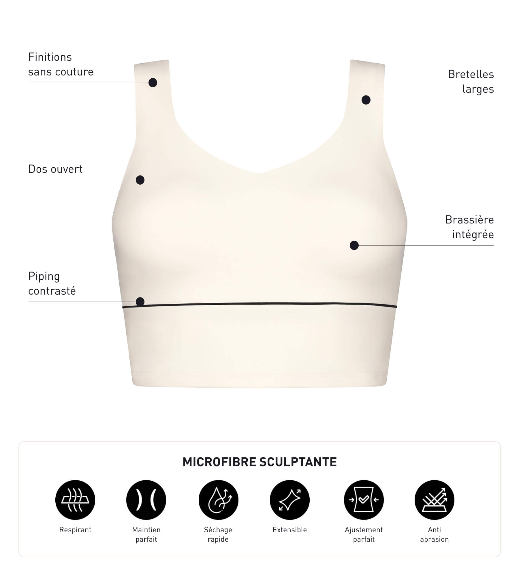 - Le maintien optimal grâce à la brassière intégrée