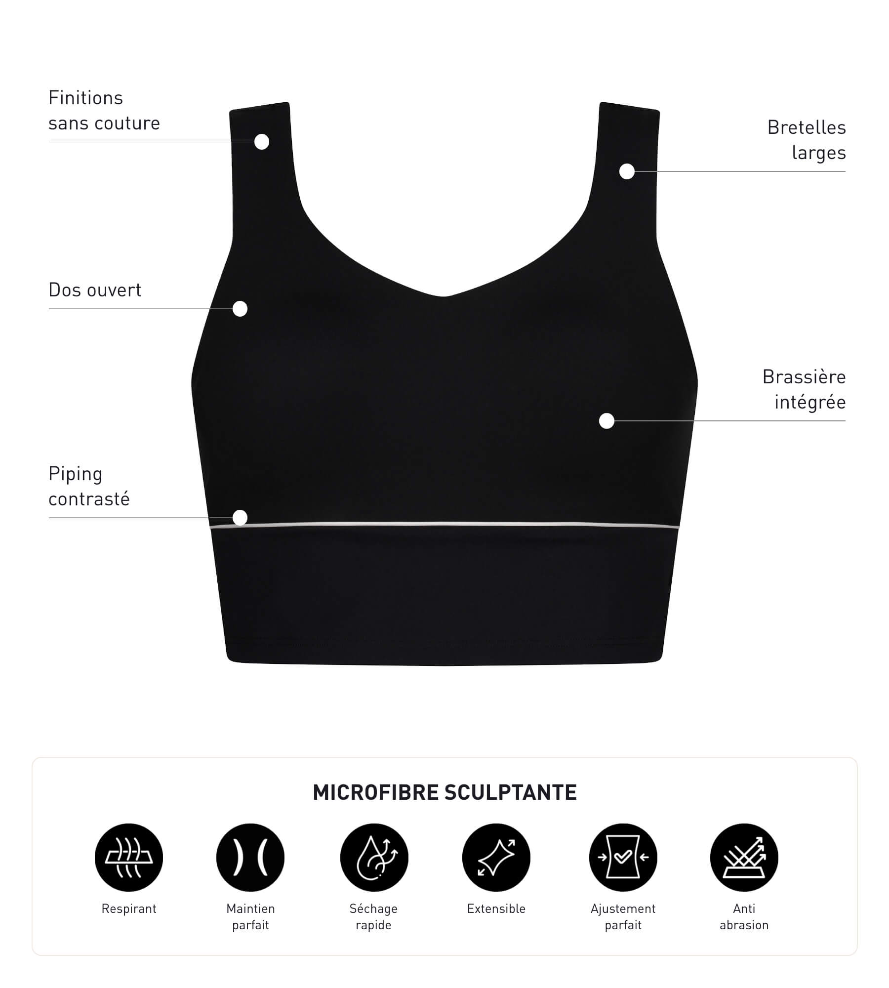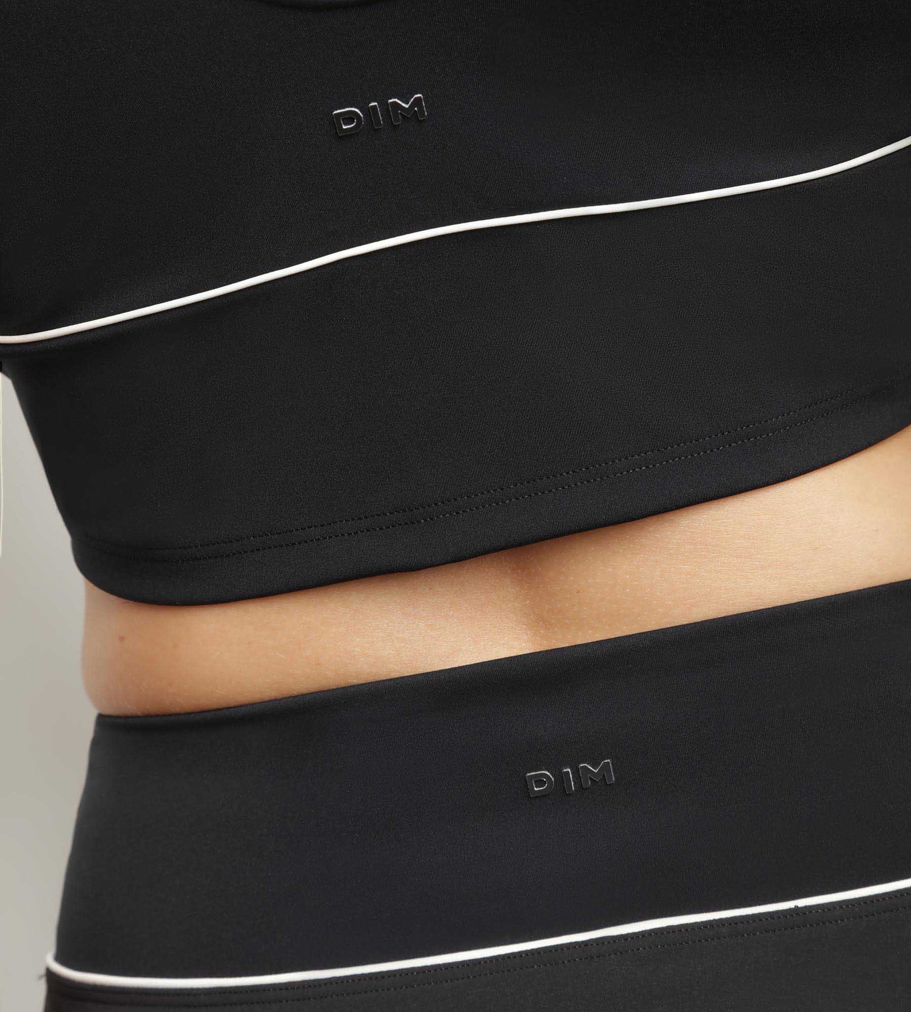 Bougez avec confort et maintien grâce au crop top de sport en microfibre noire et brassière intégrée Dim Move !