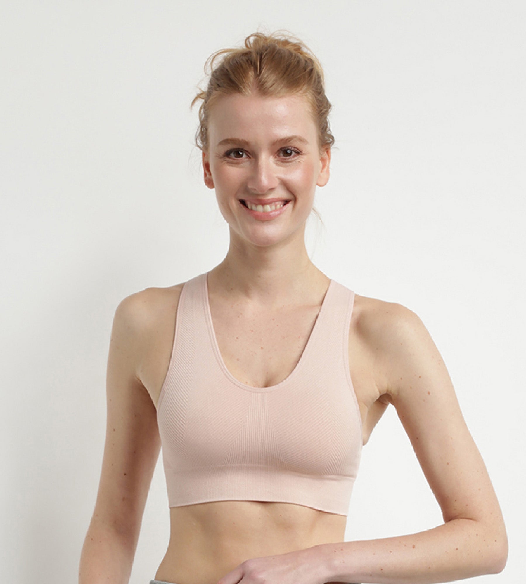 Soyez libre de vos mouvements avec la brassière rose amande chiné Dim Sport !