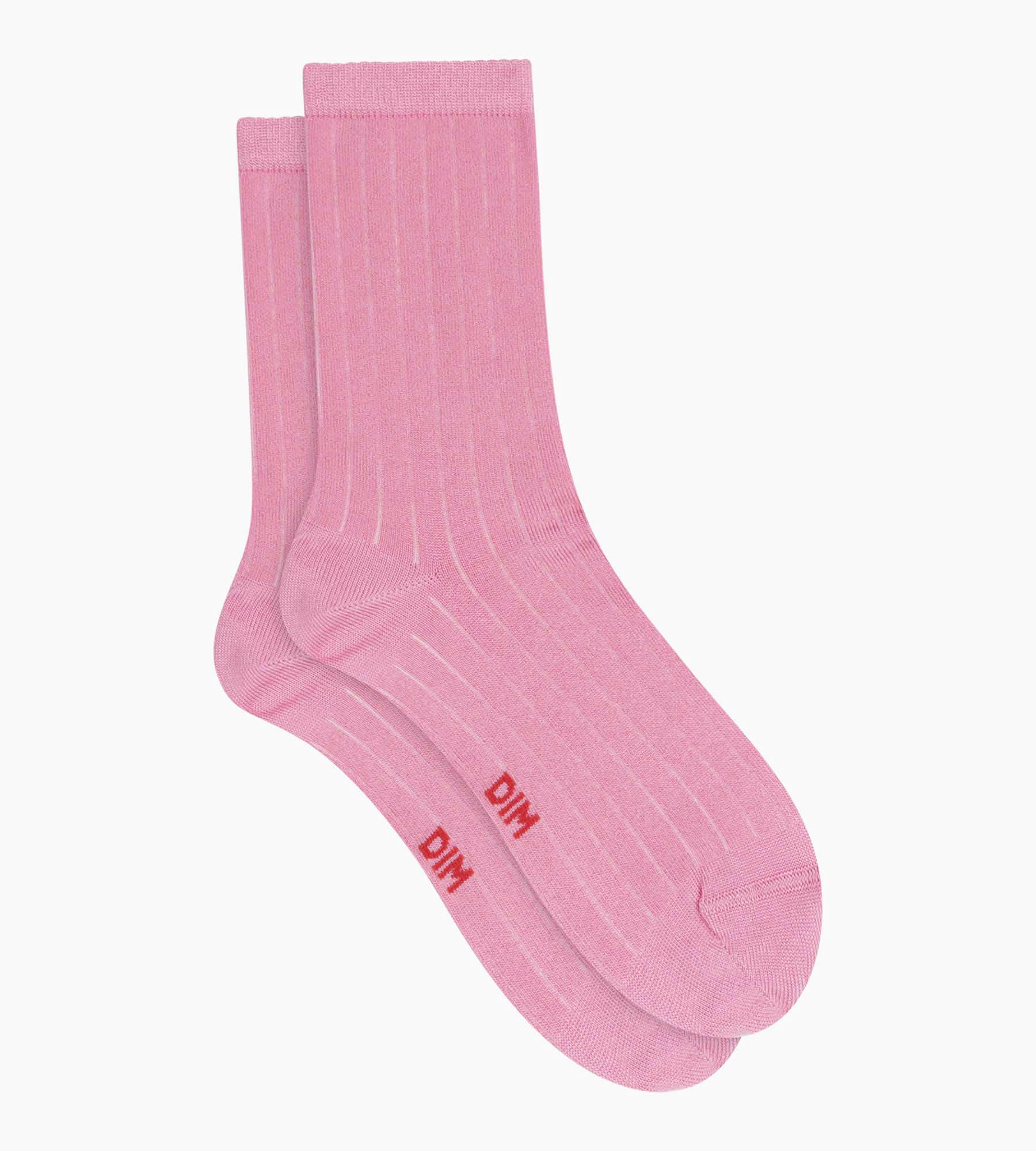 Chaussettes femme côtelées en coton satiné Mauve Dim Mode