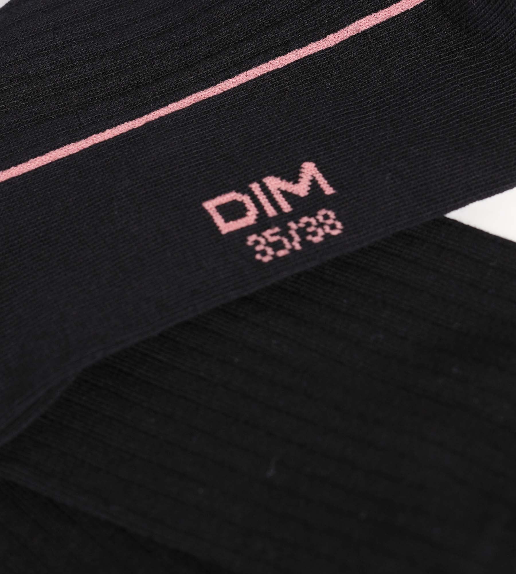 Chaussettes femme en coton côtelé Noir avec liseré coloré Dim Mode