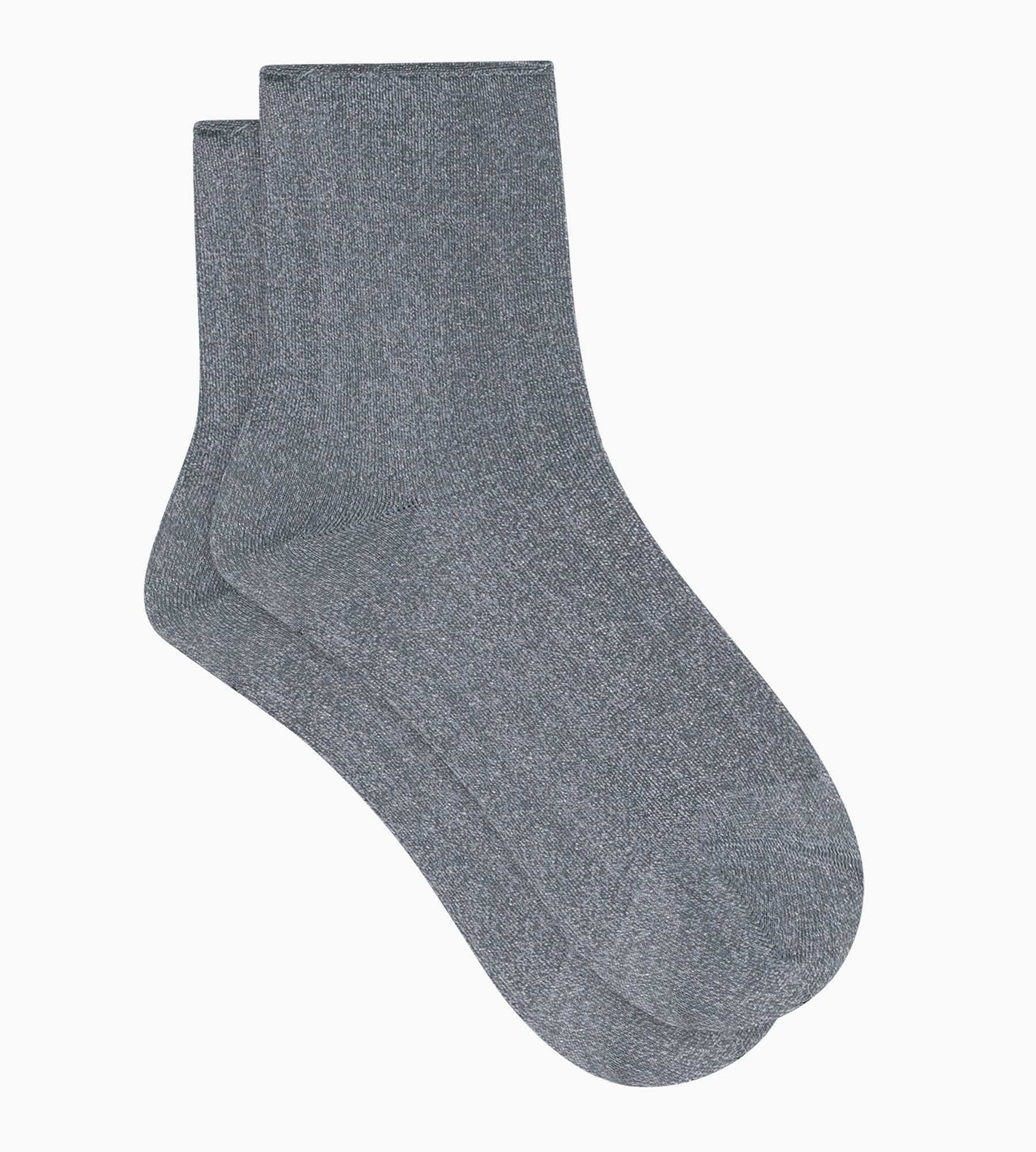 En gris clair irisé, la chaussette femme lurex Dim Mode joue la carte de la douceur et de la lumière.
