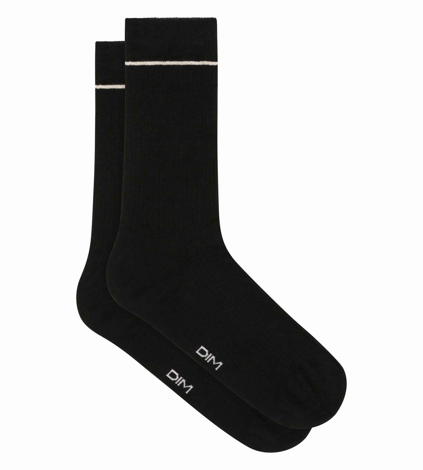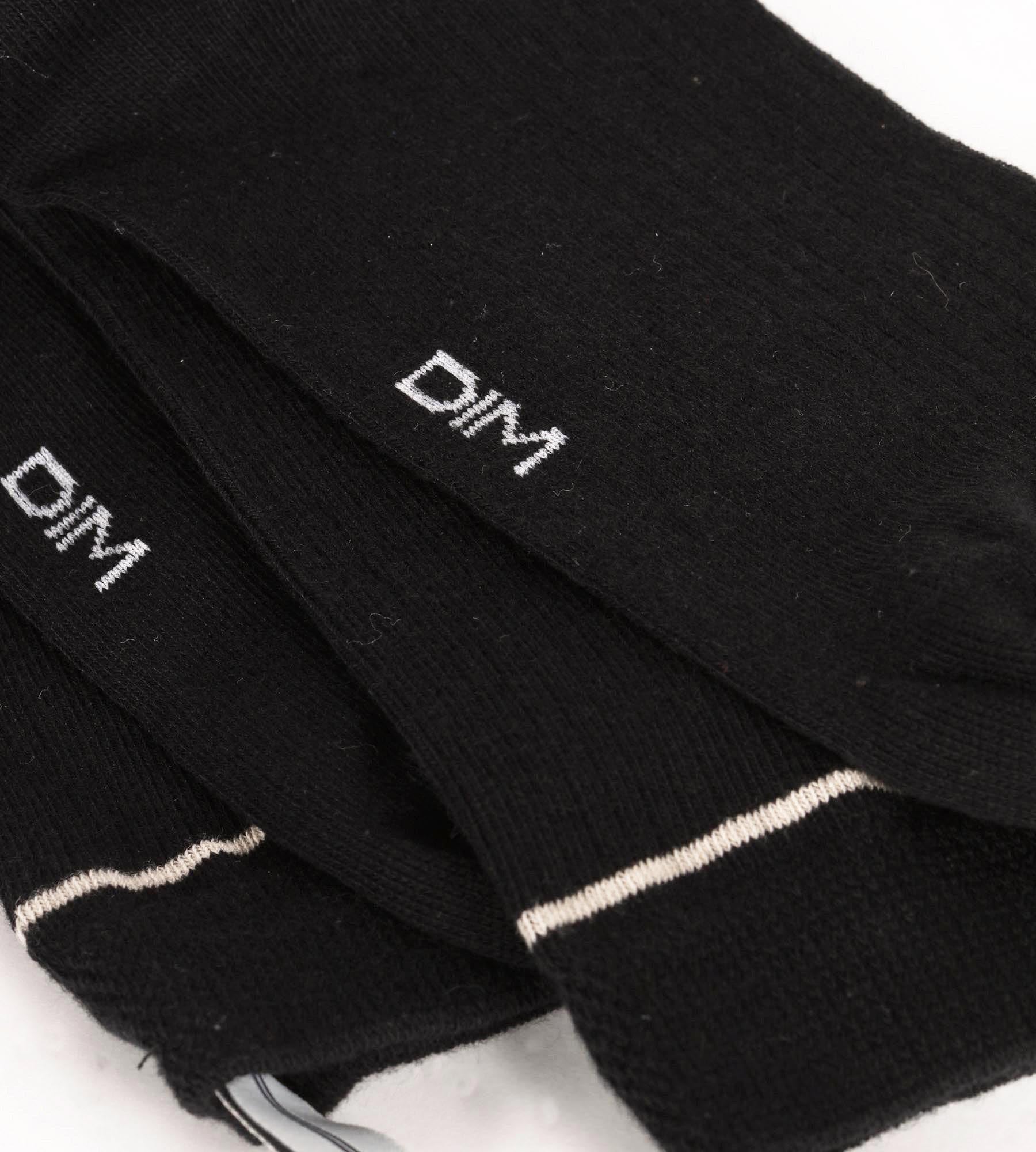 Chaussettes unisexe en coton côtelé Noir avec ligne Crème Dim Icons