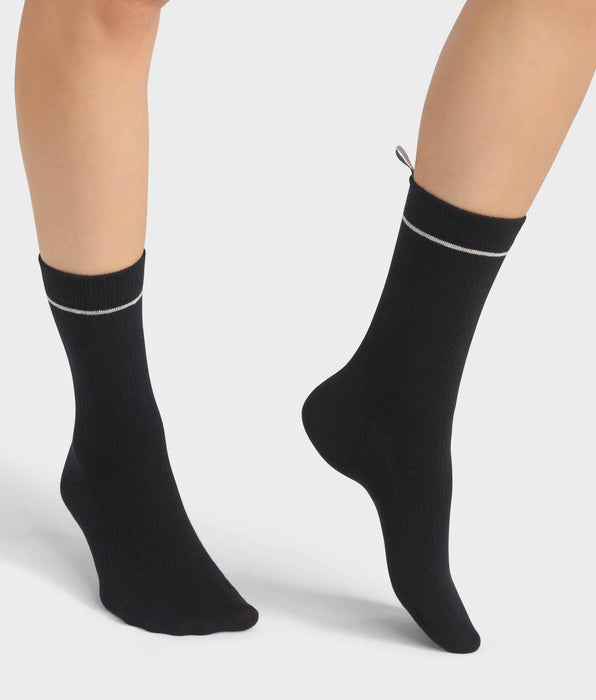 Chaussettes unisexe en coton modal côtelé Noir Dim Icons