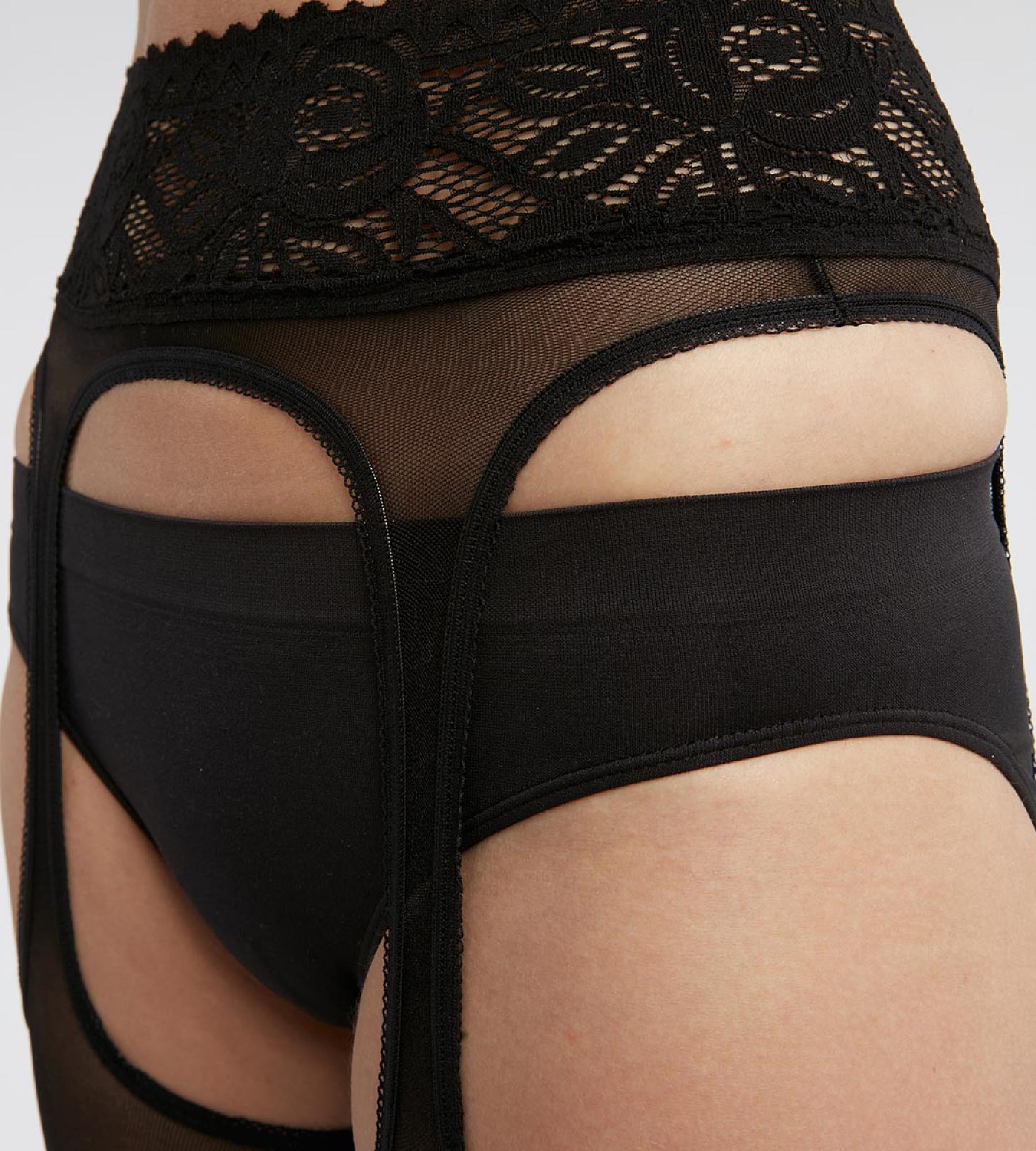 Collant femme effet jaretelles en voile et dentelle Noir Dim Sexy