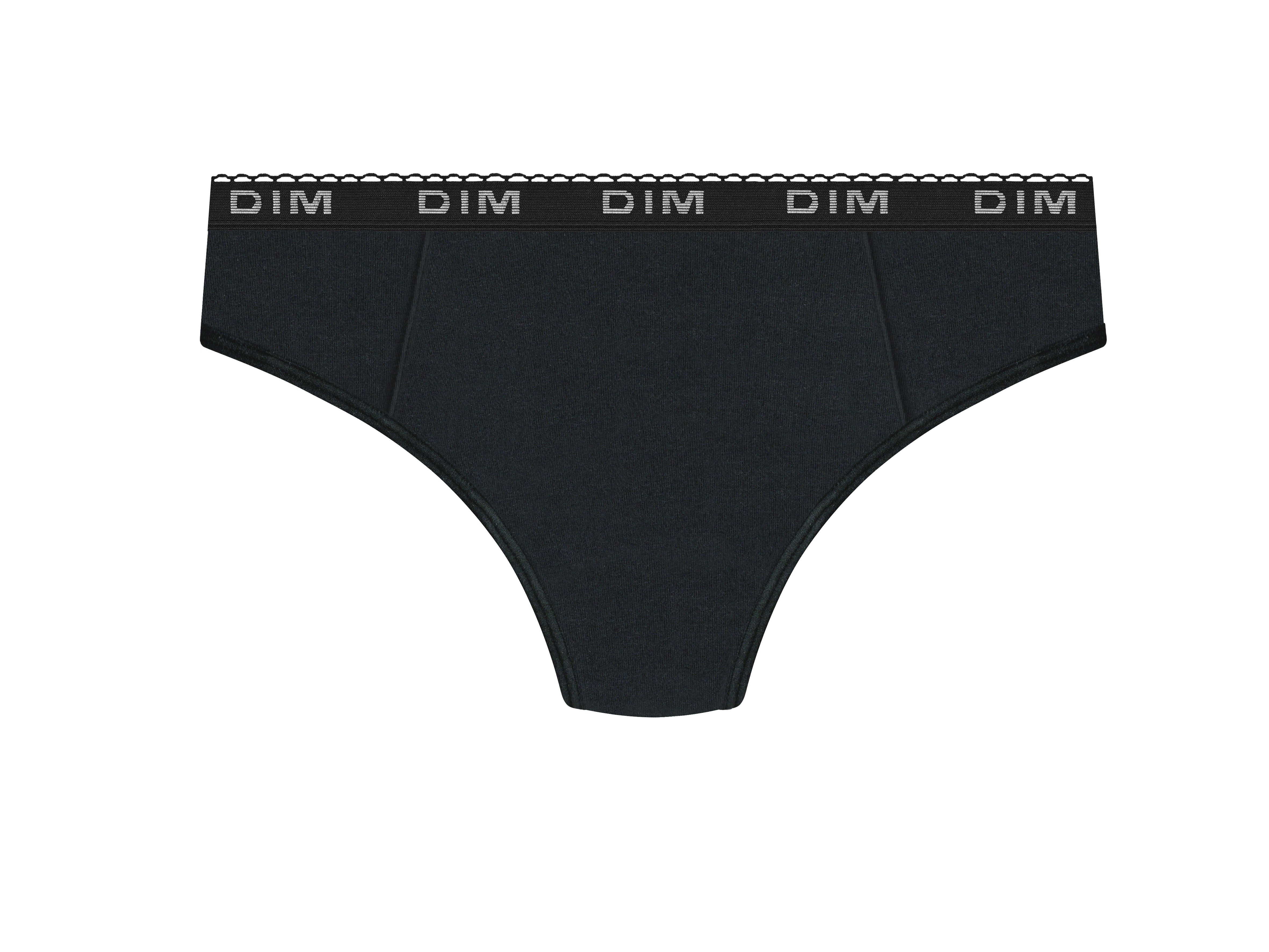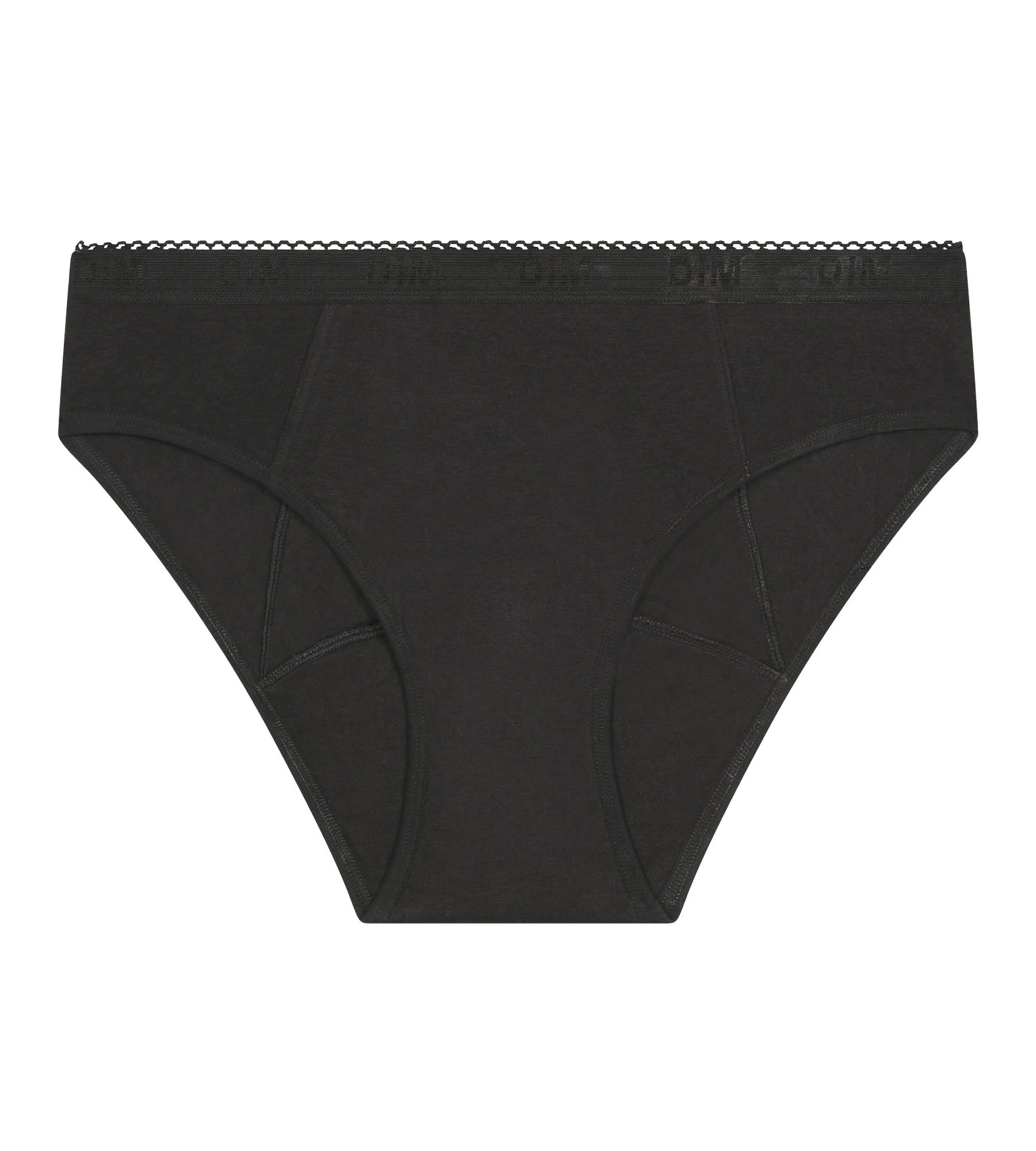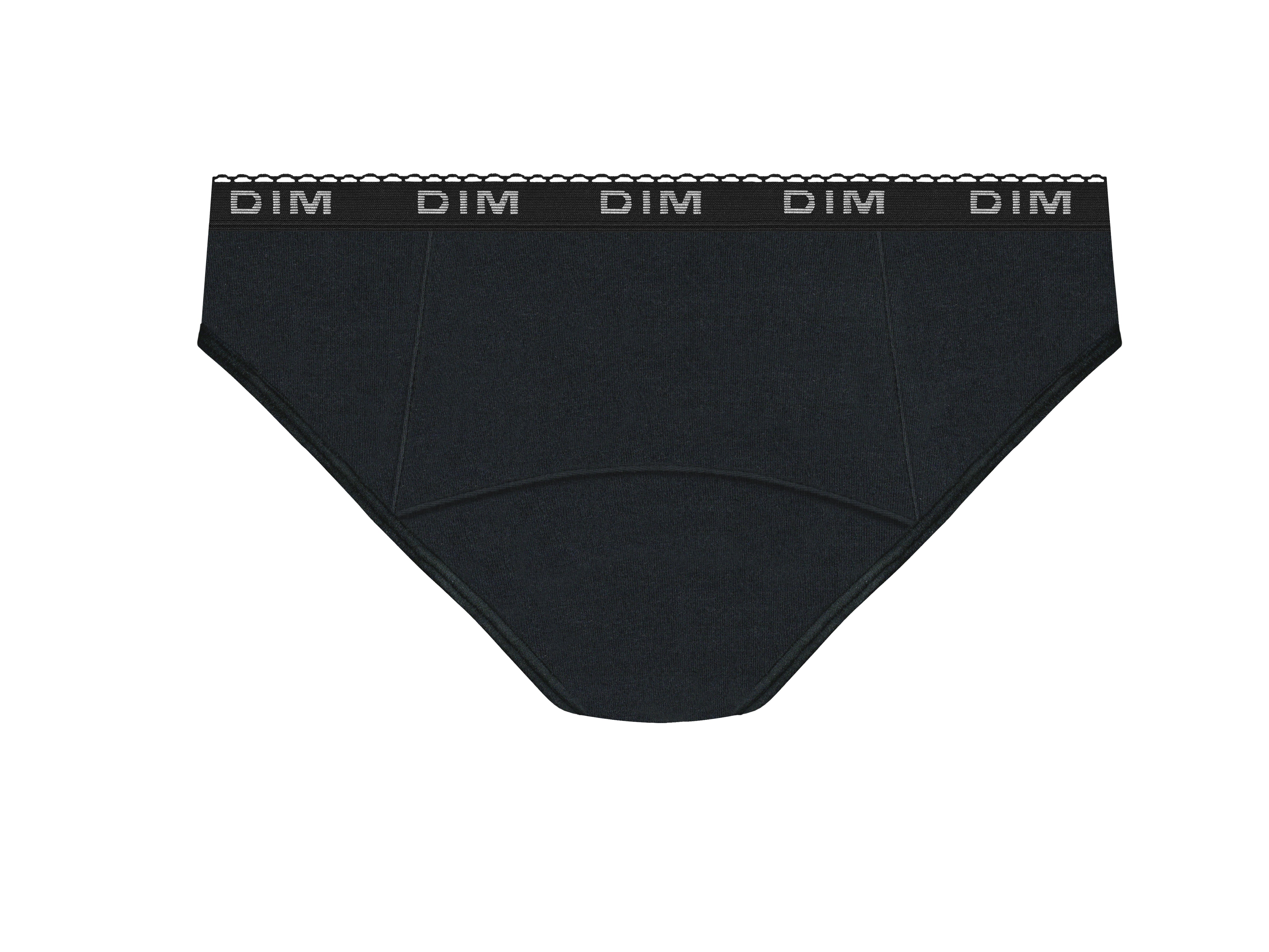 Craquez pour la coupe innovante et les finitions raffinées de la culotte menstruelle en coton bio noir Dim Protect – flux moyen à abondant.