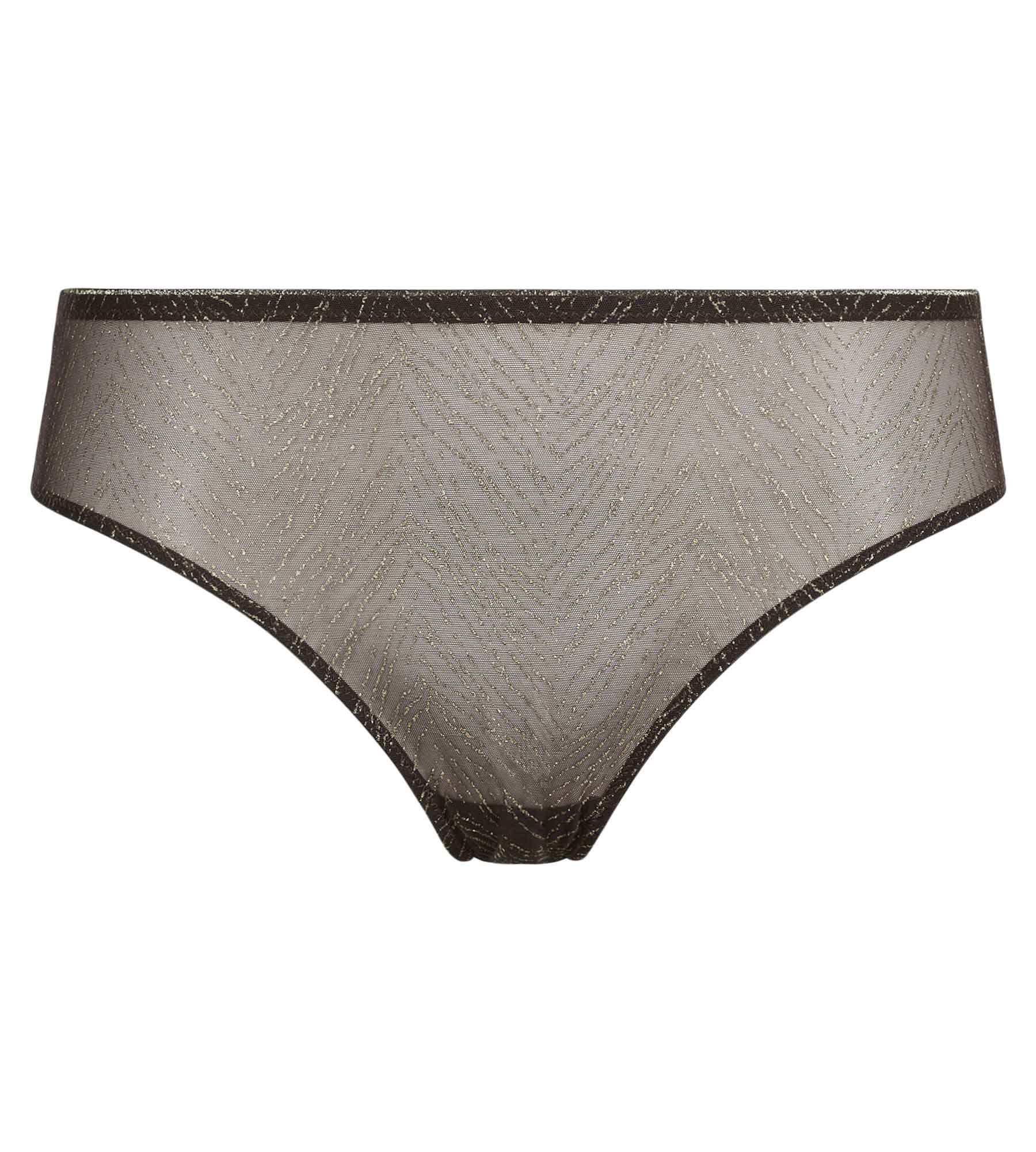 Succombez pour le style raffiné et précieux de la culotte femme en tulle transparent Chocolat à zébrures dorées Dim Generous Édition Limitée !