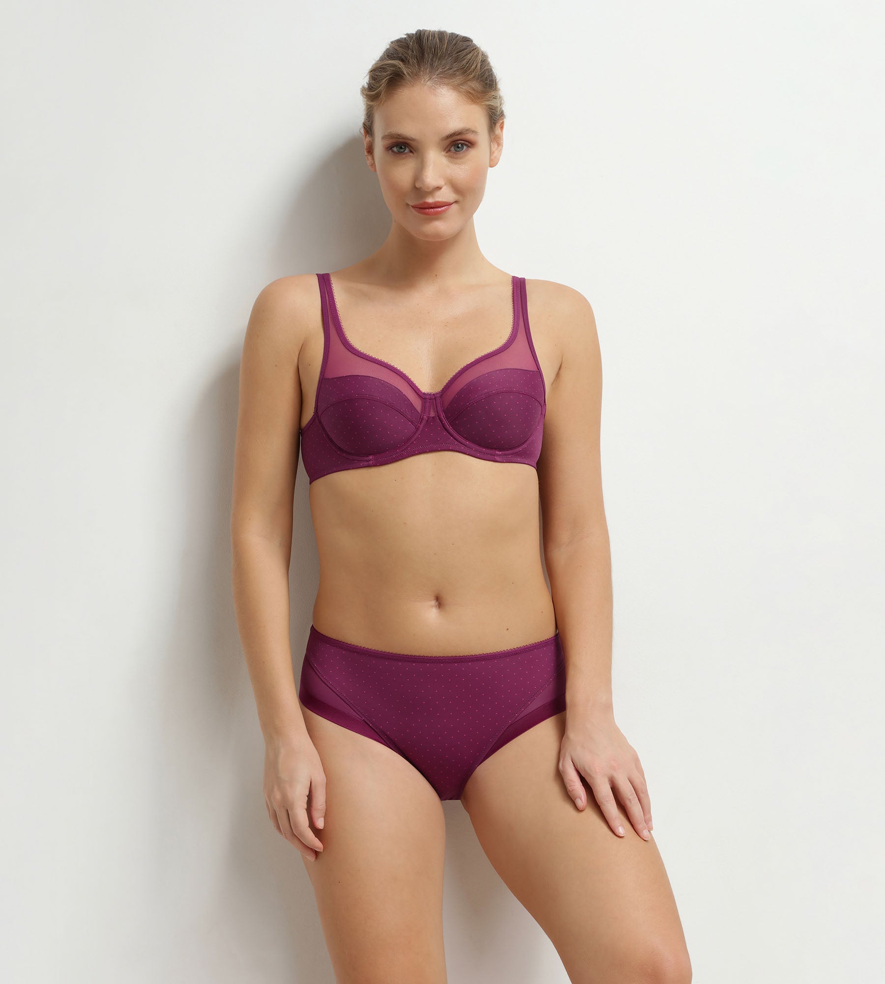 Culotte femme microfibre et tulle pois bordeaux Dim Generous