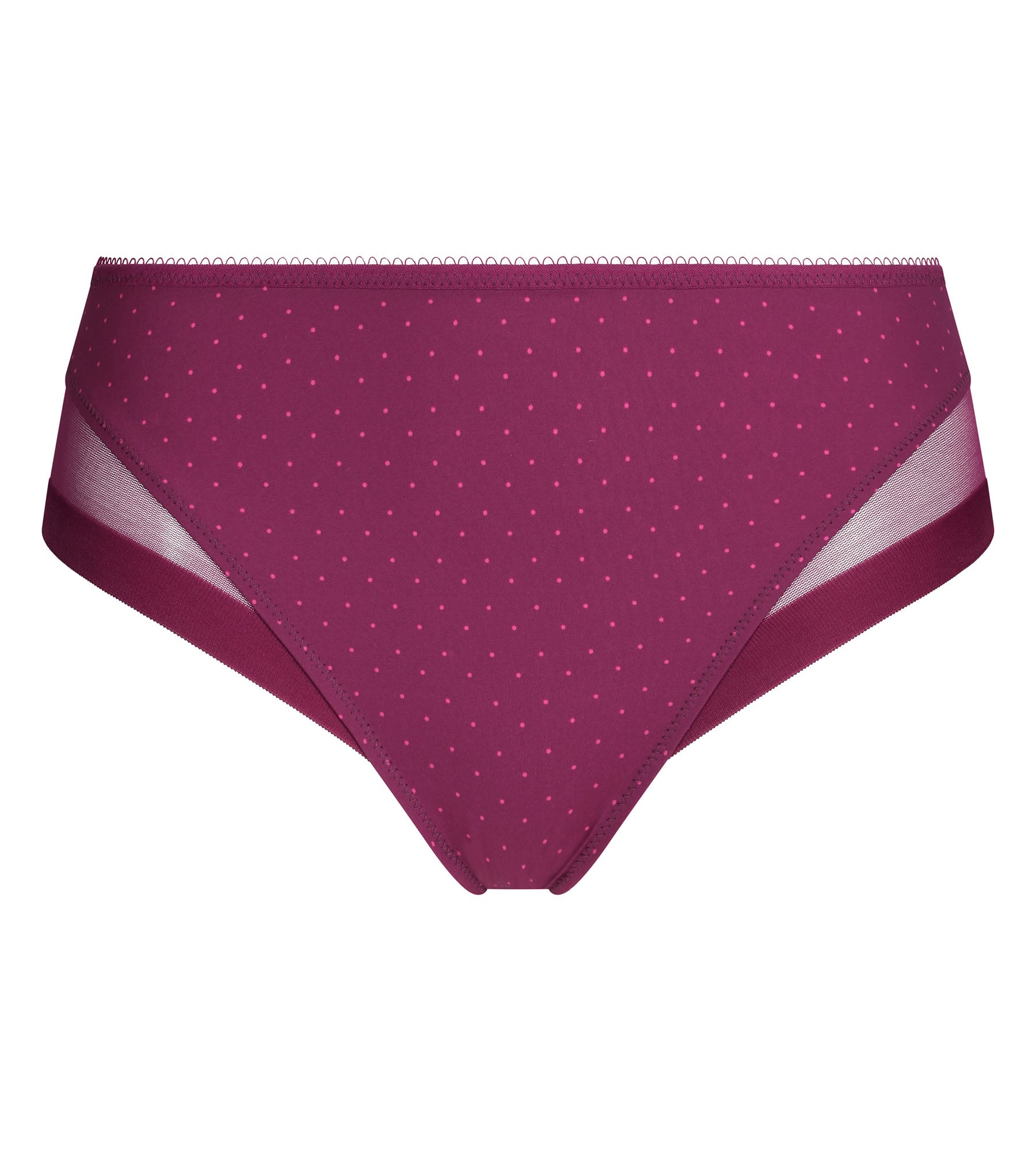 Craquez pour l’allure chic et espiègle de la culotte femme Generous de Dim en microfibre et tulle Bordeaux à pois.