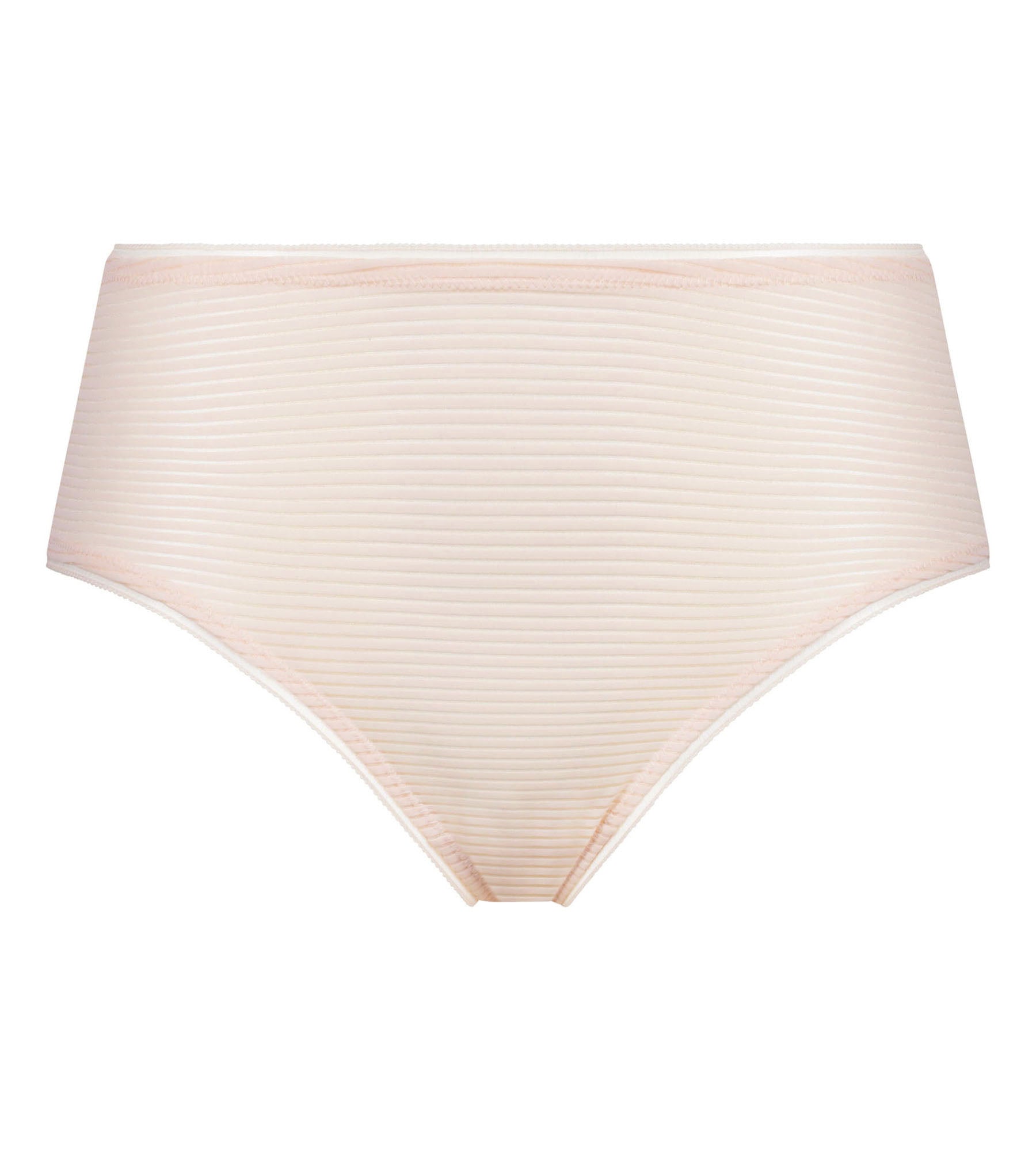 Adoptez la culotte taille haute Rose Ballerine Dim x Ines de La Fressange : une maille légère et graphique pour un confort tout en finesse.