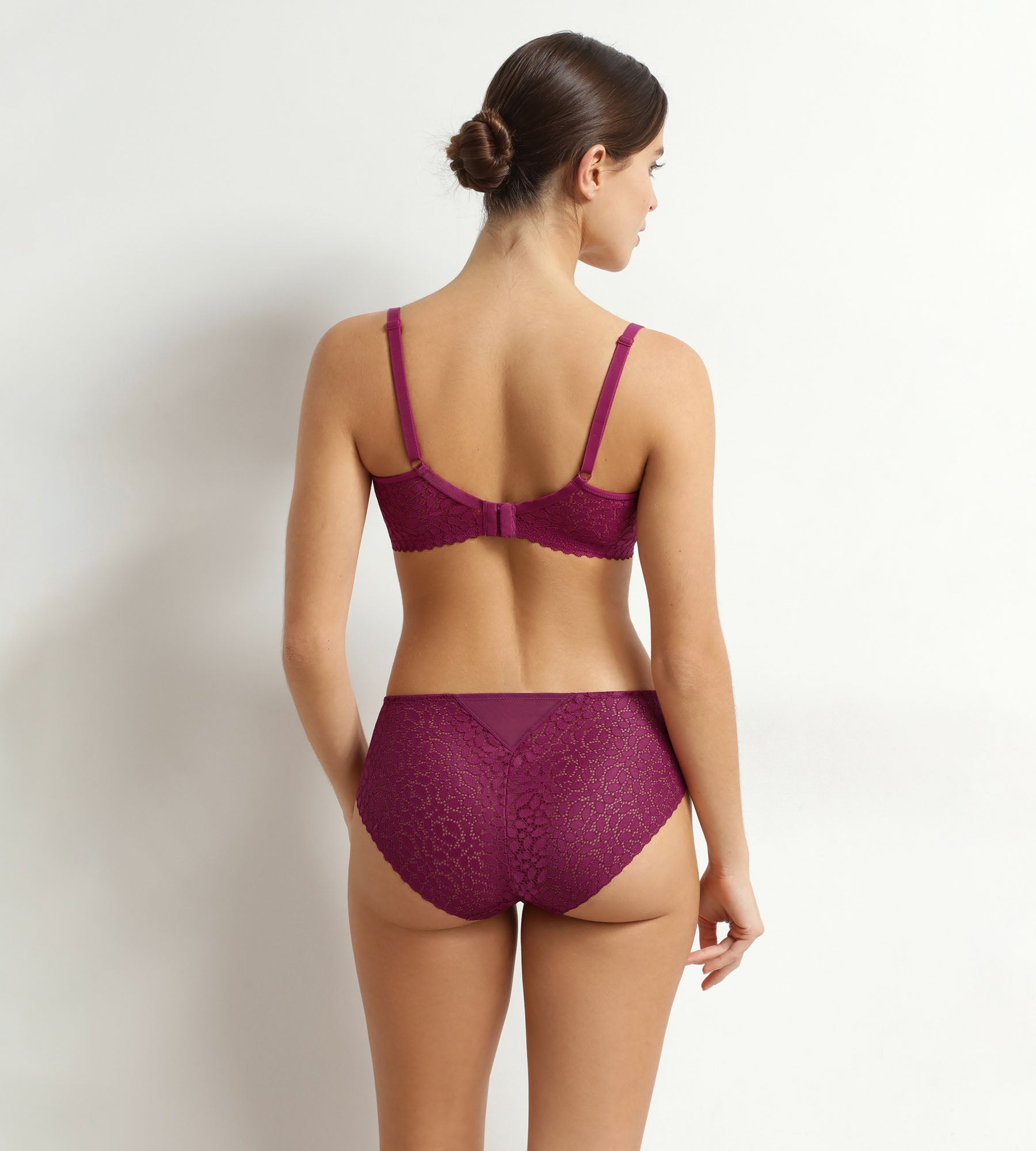 - La dentelle fine et extensible, qui s’adapte sans contrainte