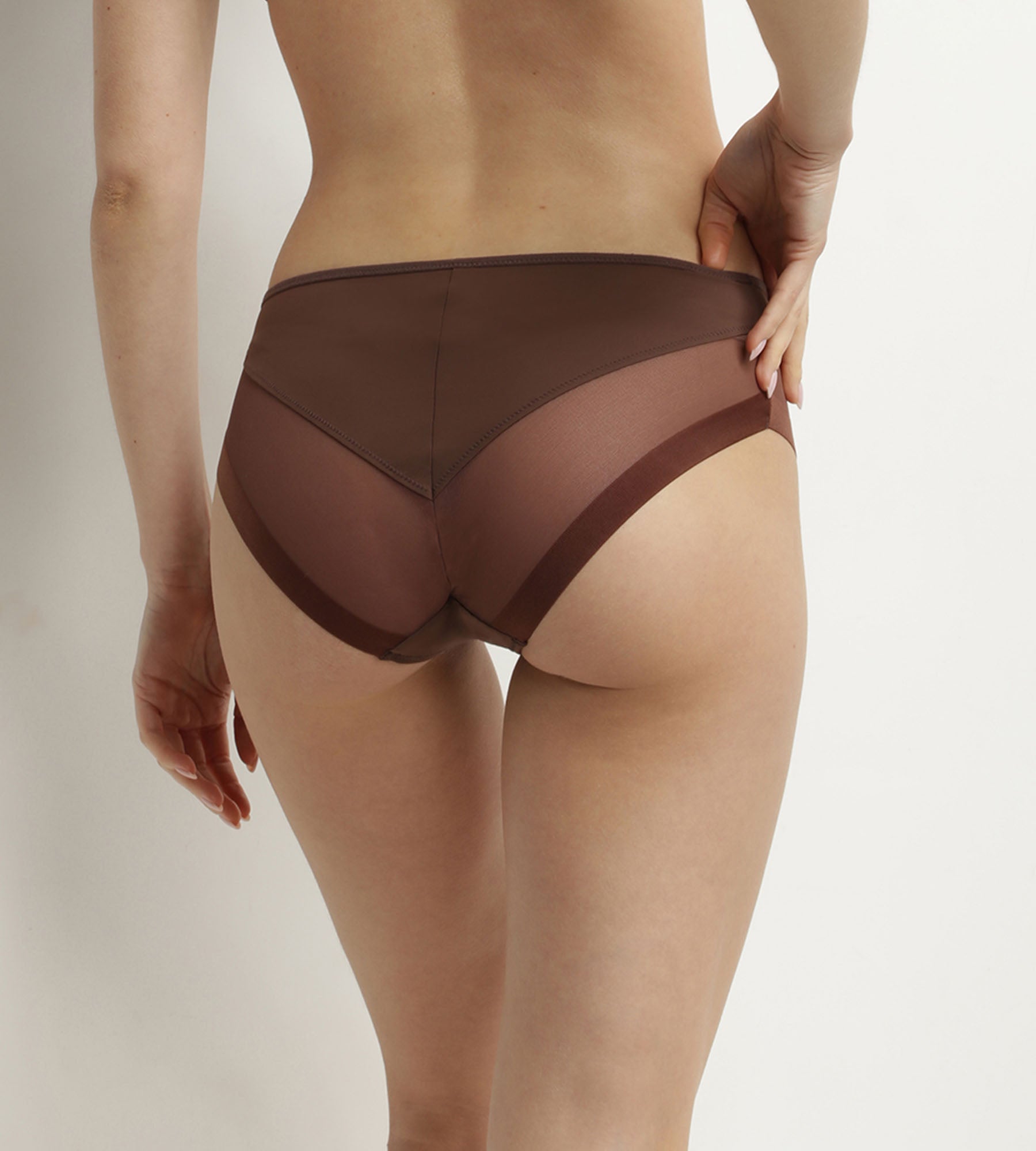 Douceur et sensualité sont de la partie avec la culotte femme en microfibre et tulle Marron Dim Generous !