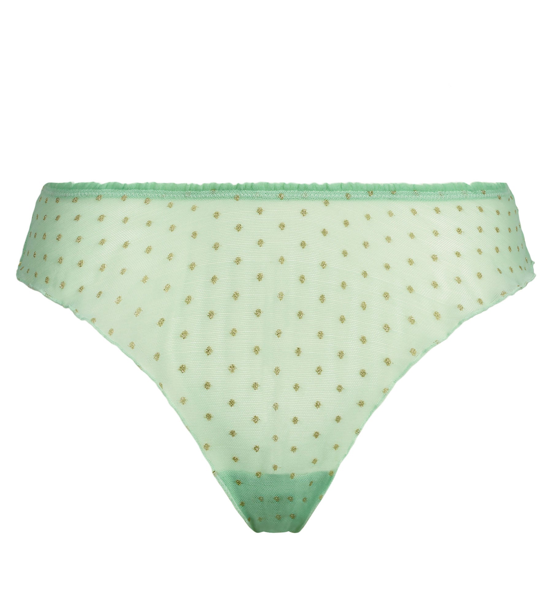 Craquez pour la culotte femme en tulle transparent et pois lurex Shiny Mesh de Dim, au coloris Vert d’Eau vivifiant !