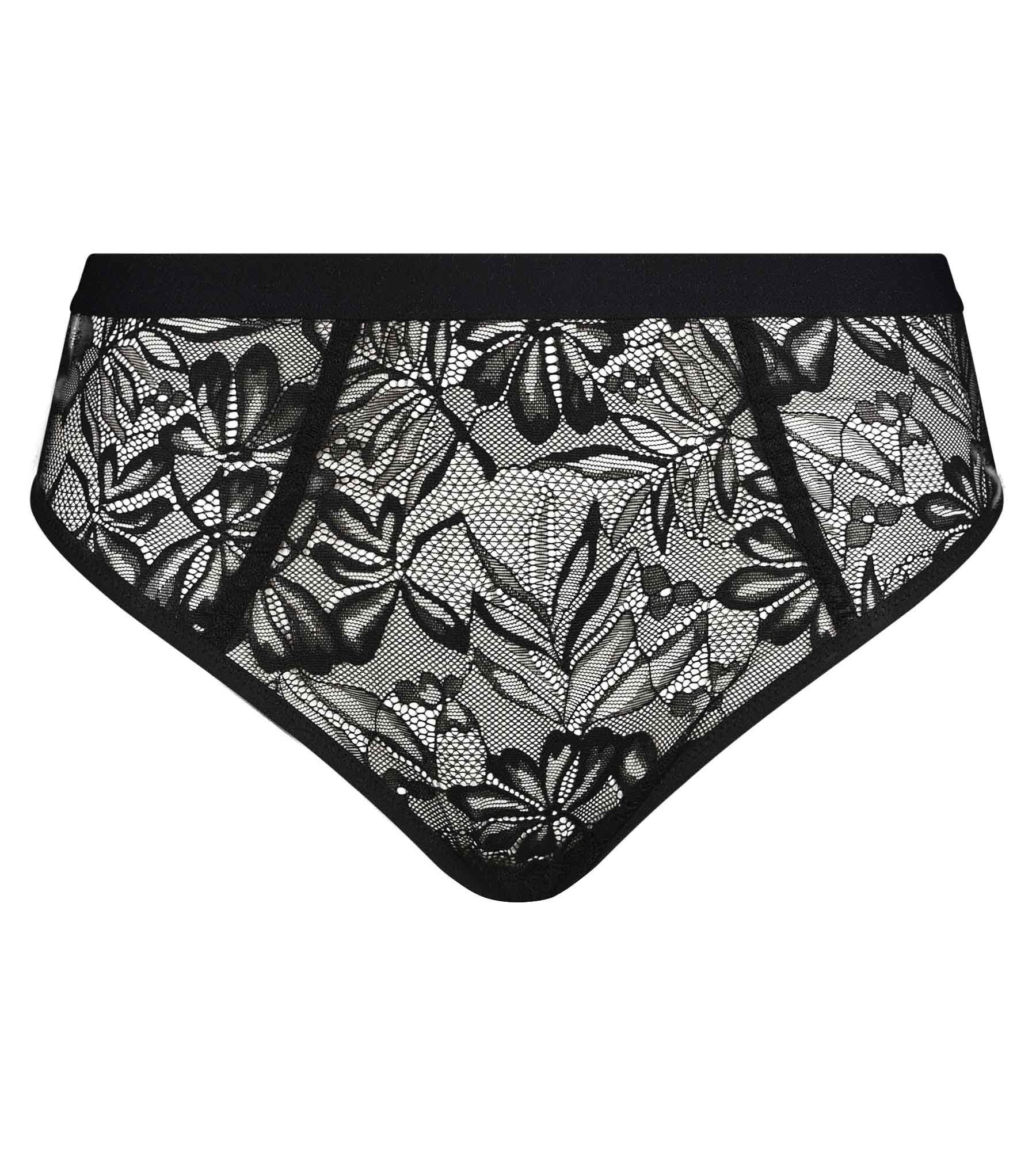 Culotte taille haute en dentelle noire à feuillage Mod de Dim