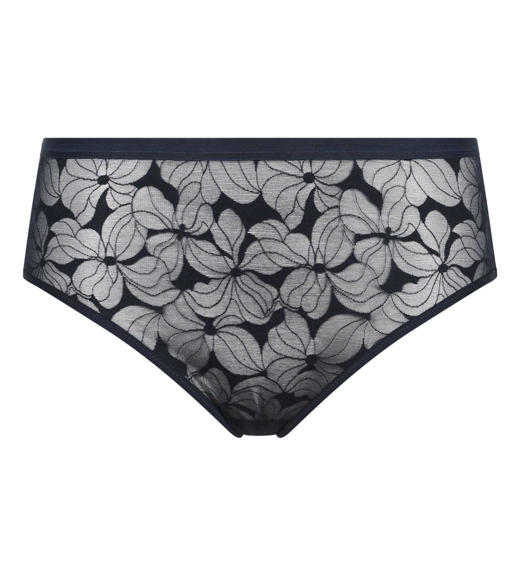 Alliez confort et allure graphique avec la culotte taille haute Dim Bloom en dentelle bleue.