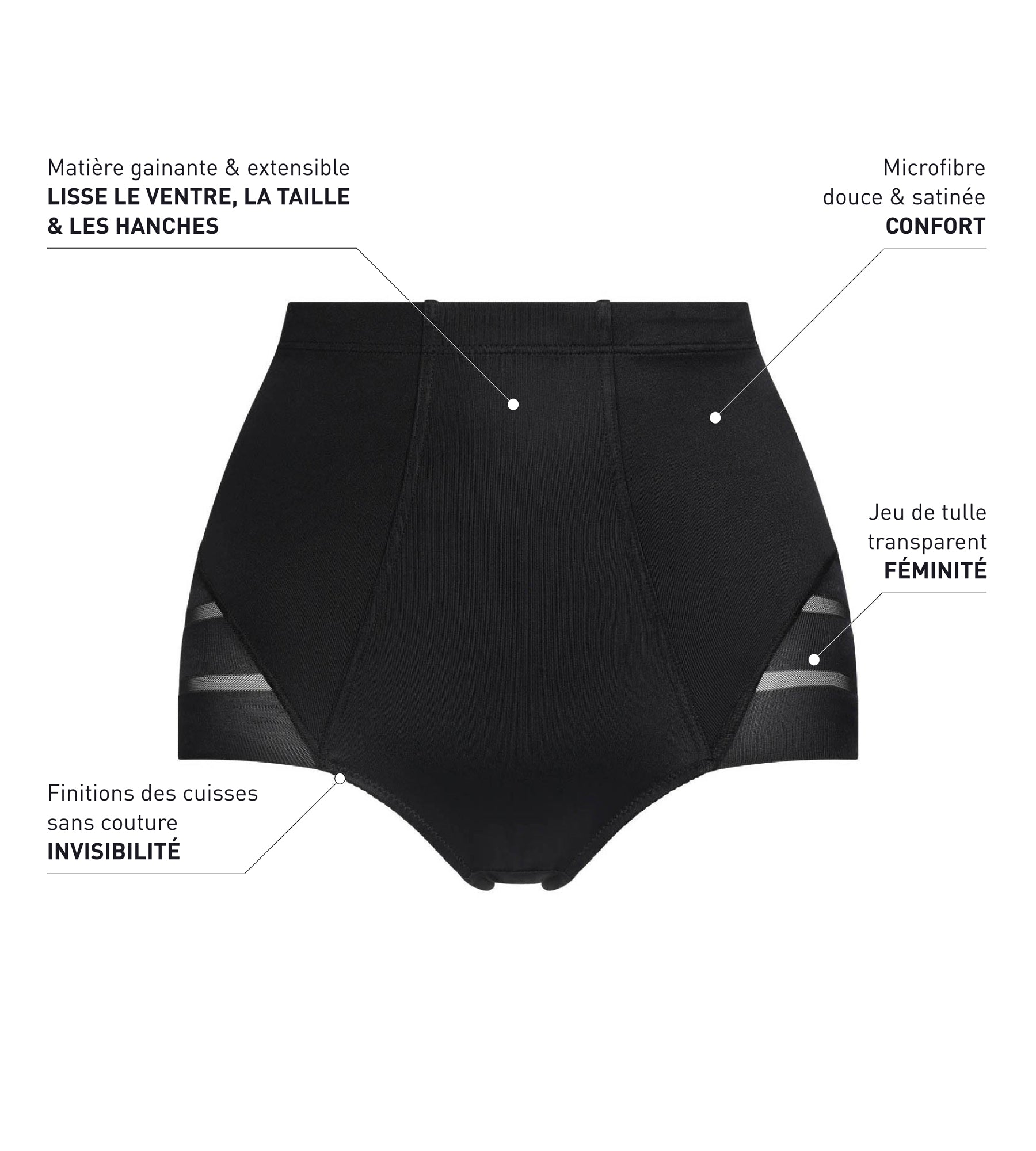 Culotte ventre plat taille haute noire Dim Silhouette Elegance