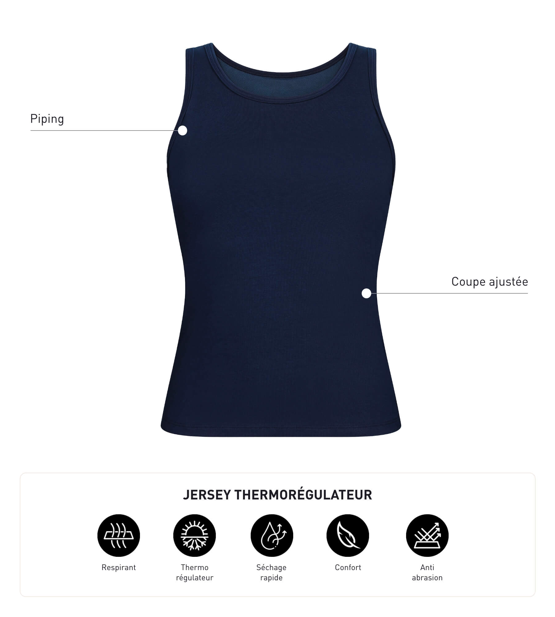- Le jersey respirant qui sèche vite et limite les odeurs