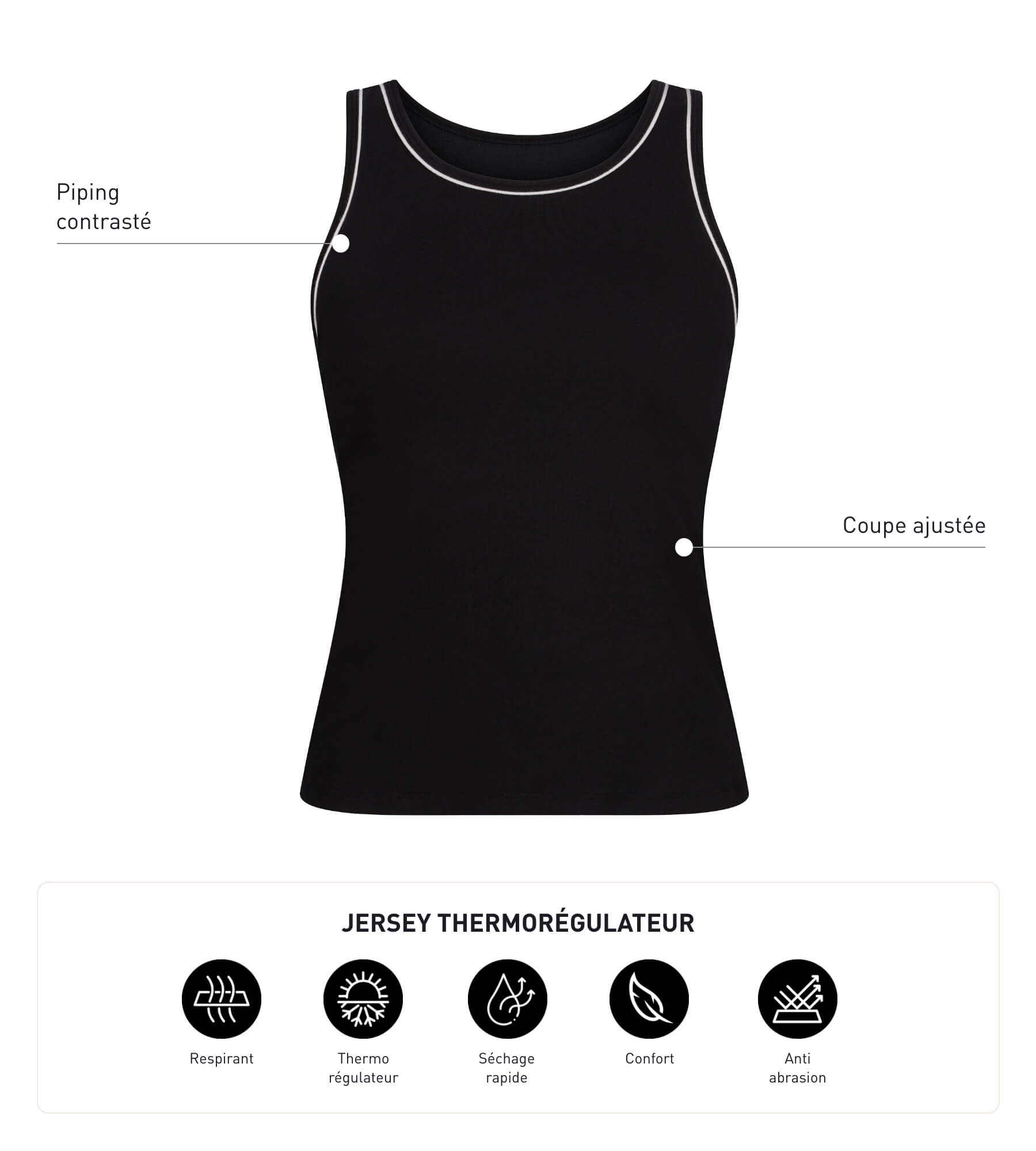 Débardeur de sport femme thermorégulateur en jersey Noir Dim Move