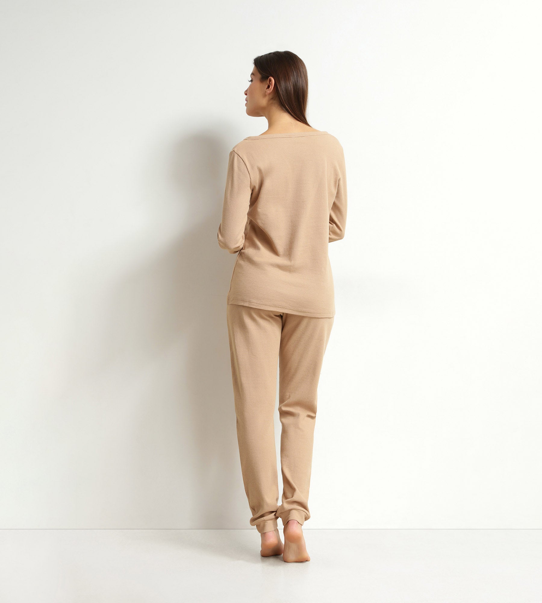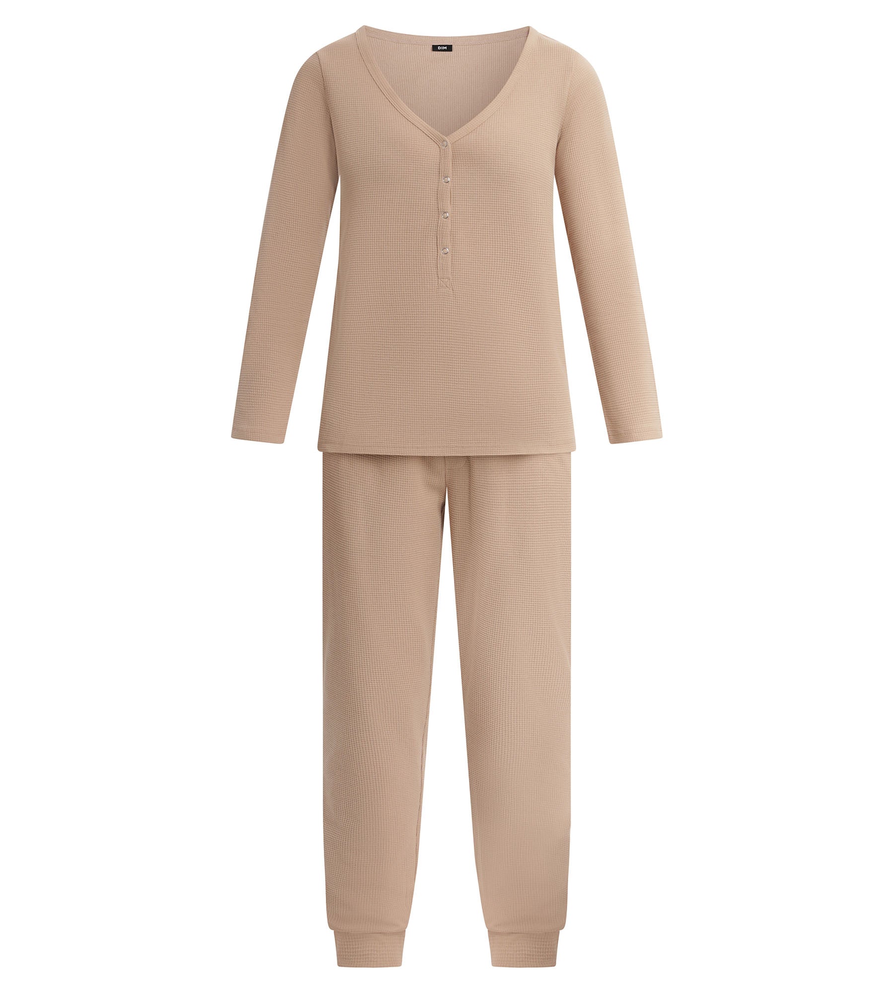 Avec son mélange jersey texturé Marron Taupe, l’ensemble pyjama femme Dim Cosy Time transforme vos moments de détente en instants cocooning !
