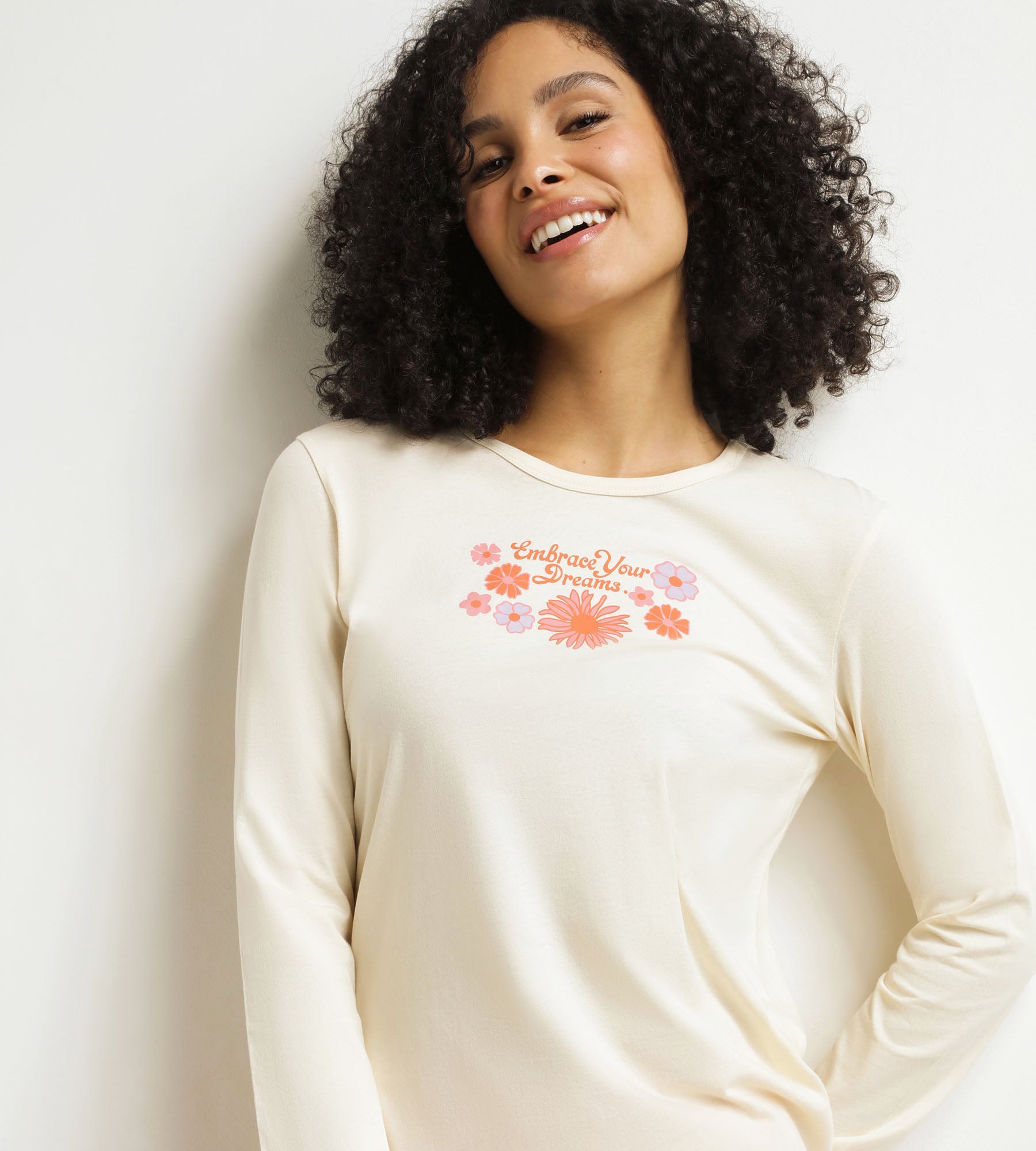 Misez sur un style doux et élégant avec l’ensemble pyjama Dim Don’t Disturb en jersey beige lavé.