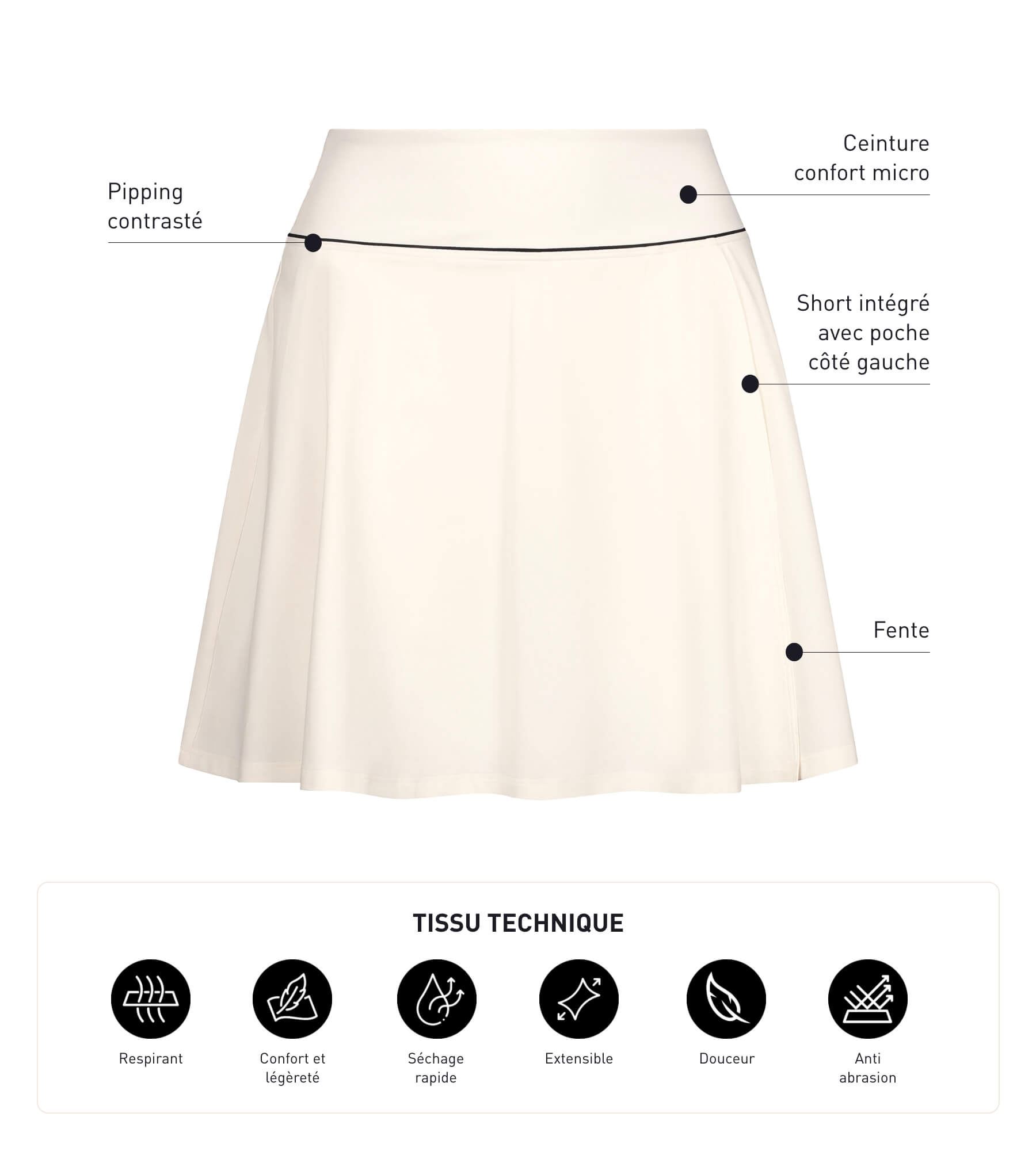 Abordez votre pratique avec aisance et coquetterie grâce à la jupe short en microfibre écrue Dim Move !