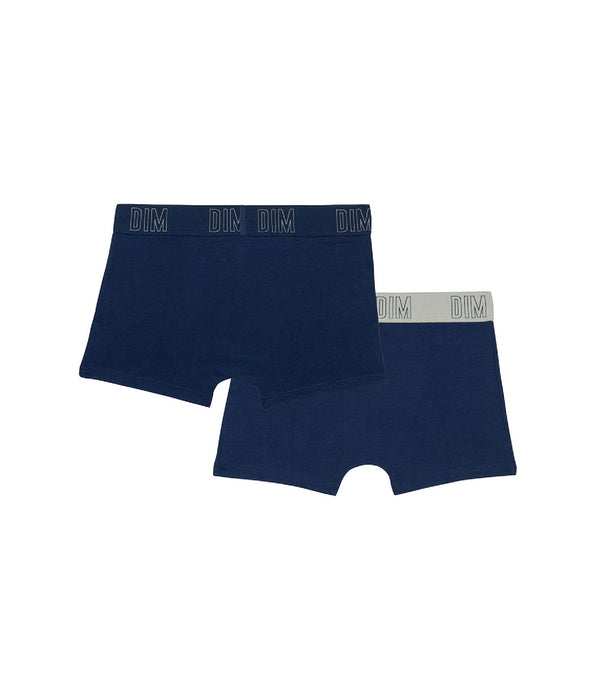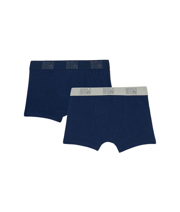 Votre ado craque pour le look moderne de ce lot de 2 Sous-vêtements Enfant Dim Skin Care en coton bio Bleu Marine et à la ceinture contrastée !