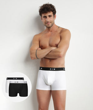 Constitué d’un boxer noir à ceinture blanche et logo Dim noir, et d’un second Boxer homme coton blanc avec bande de maintien noire et sigle blanc, le pack de 2 Boxers DIM Originals vous habille avec charisme et élégance, en toutes circonstances ! Coup de coeur pour le design minimaliste de la ceinture et les coutures à fils contrastés, votre Lingerie DIM ORIGINALS structure votre taille avec style !