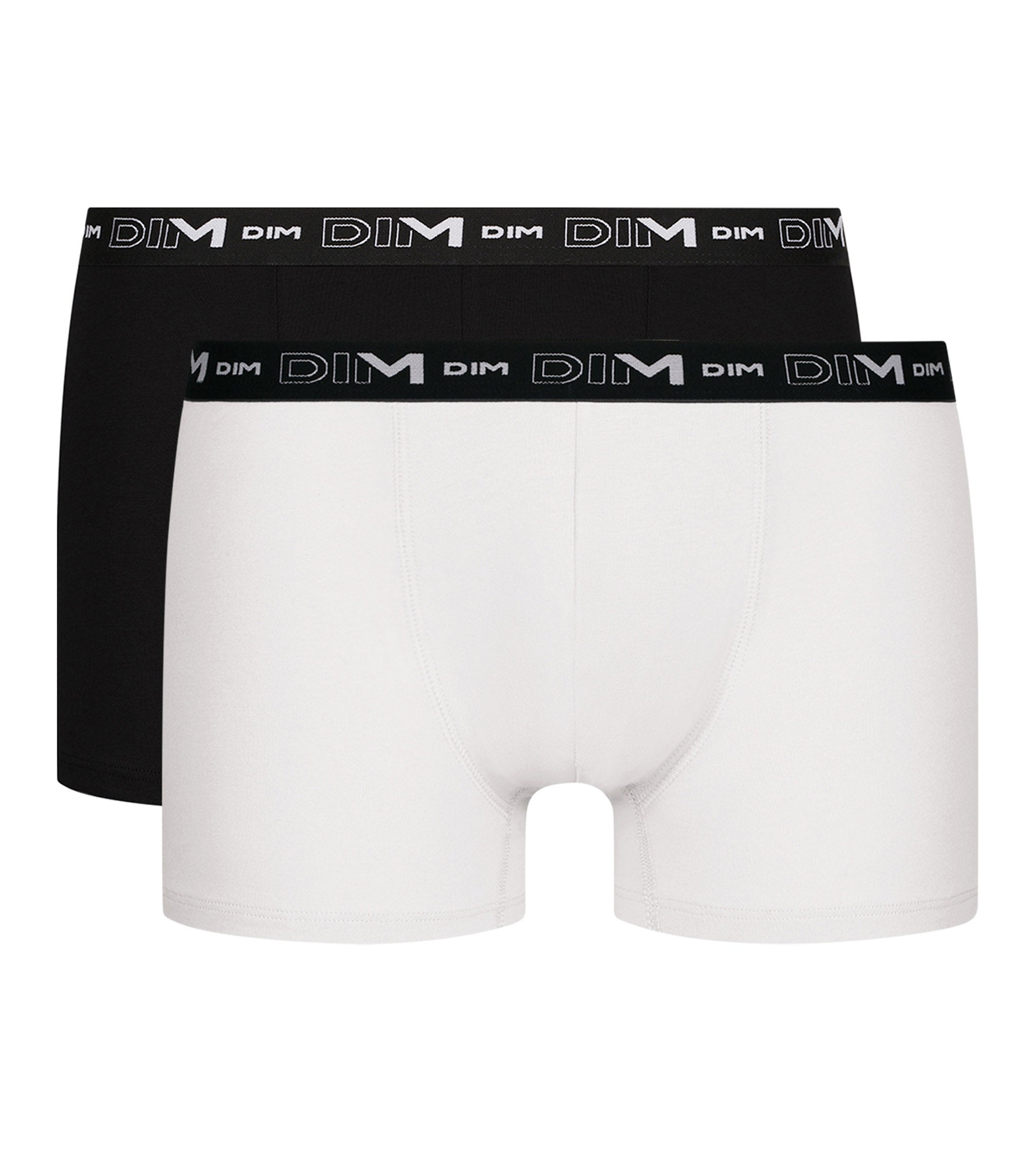 Combinez confort et style intemporel avec le lot de 2 boxers homme Dim Coton Stretch Blanc et Noir.