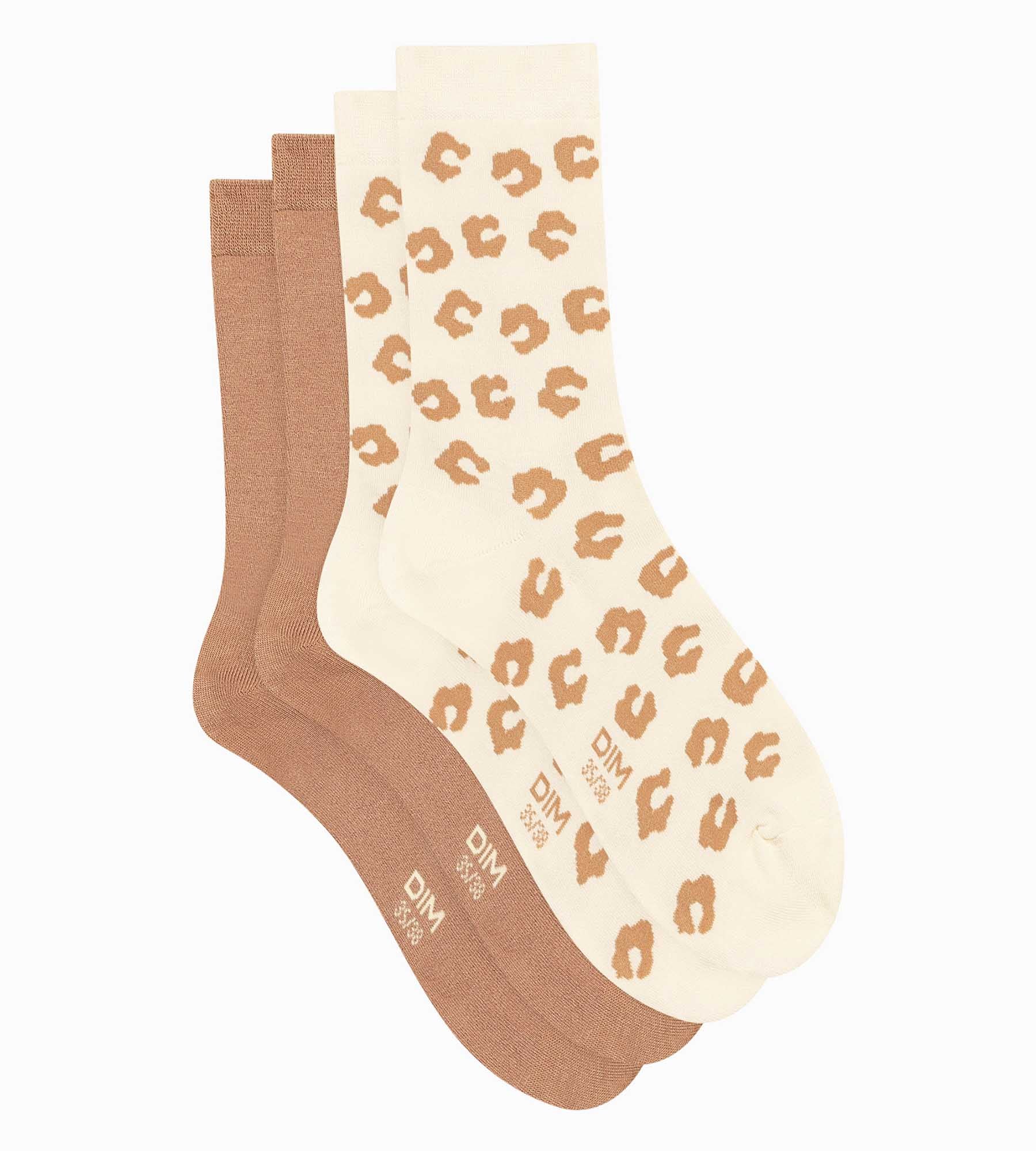 Alliez confort et modernité avec le lot de 2 paires de chaussettes femme aux impressions florales Crème Dim Bambou !
