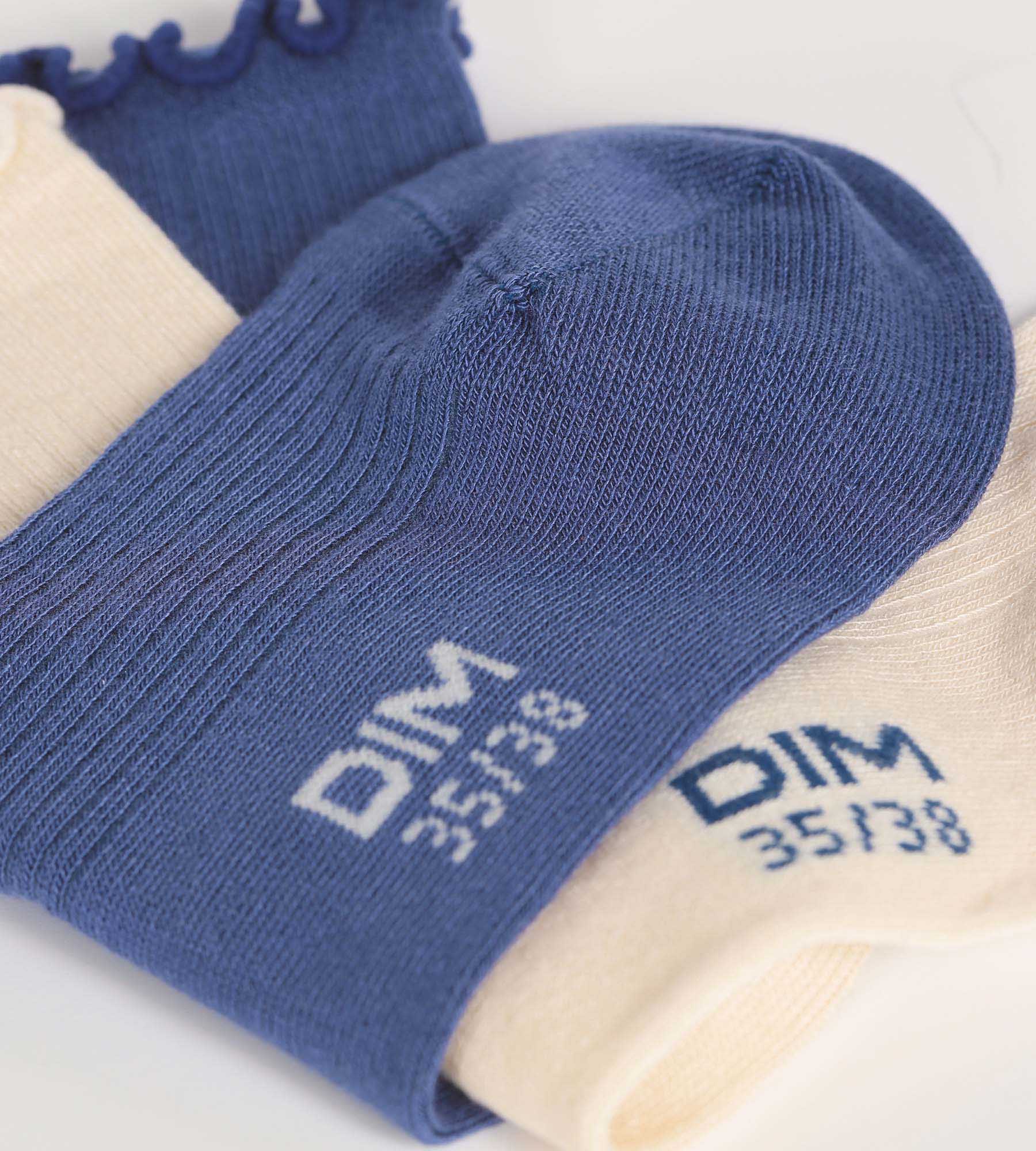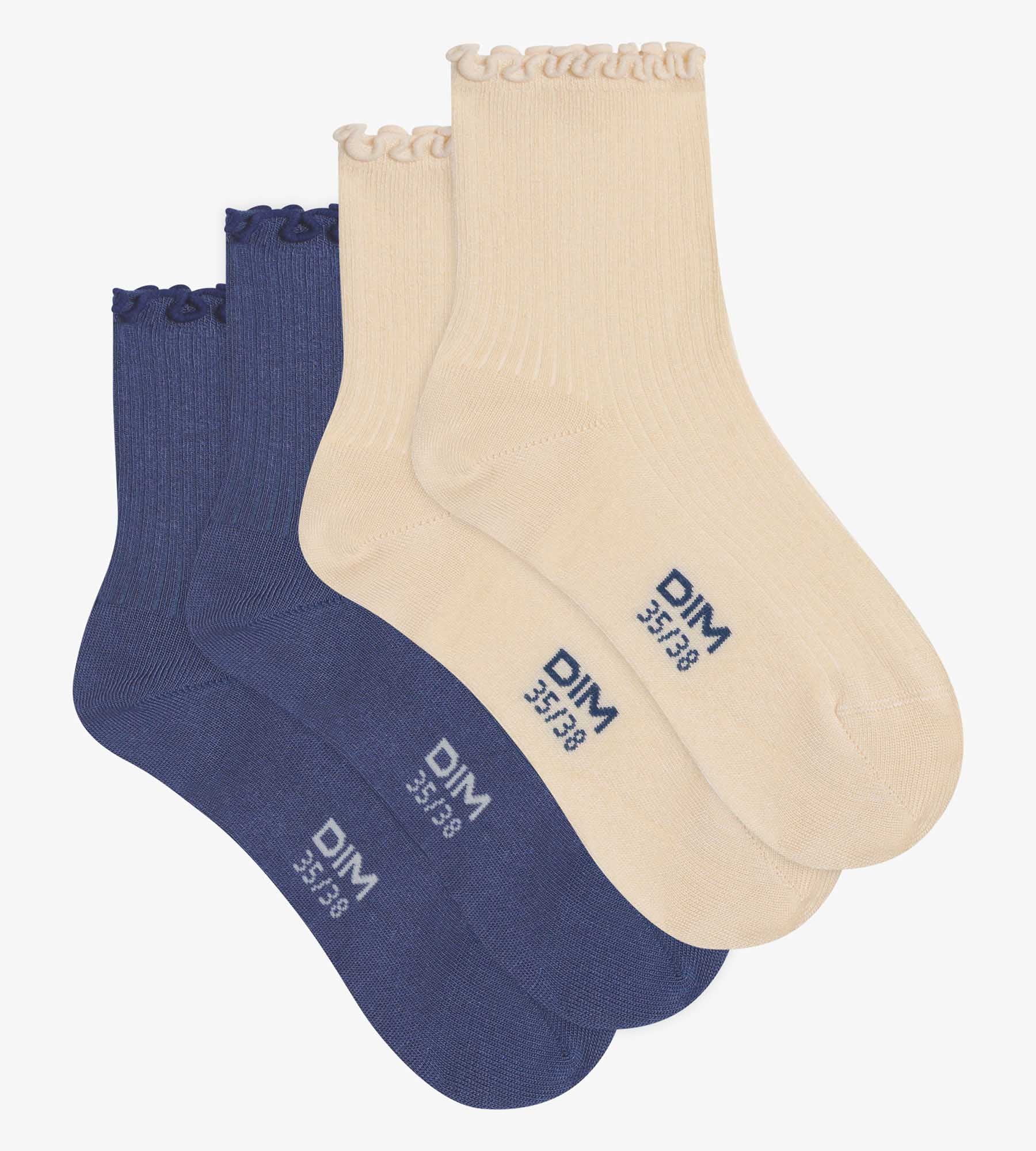 Lot de 2 paires de chaussettes femme à volants Bleu Crème Dim Modal