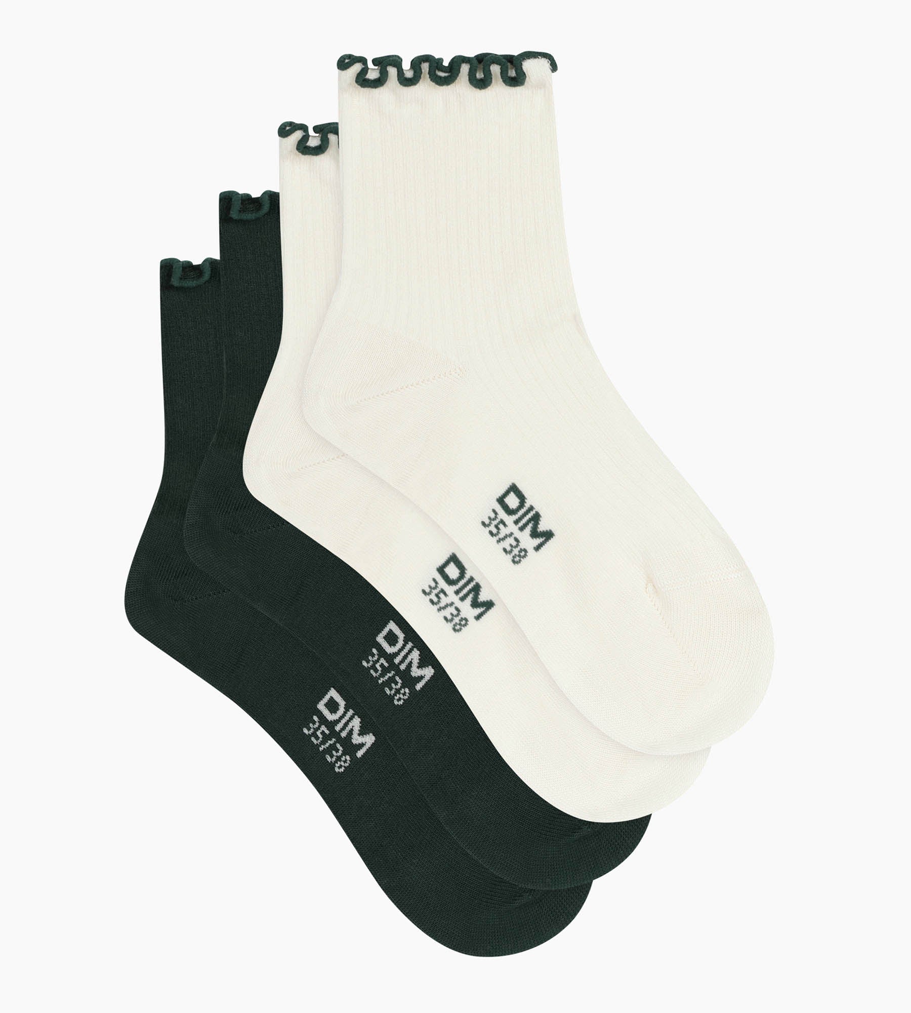 Lot de 2 paires de chaussettes femme à volants Pin Ivoire Dim Modal