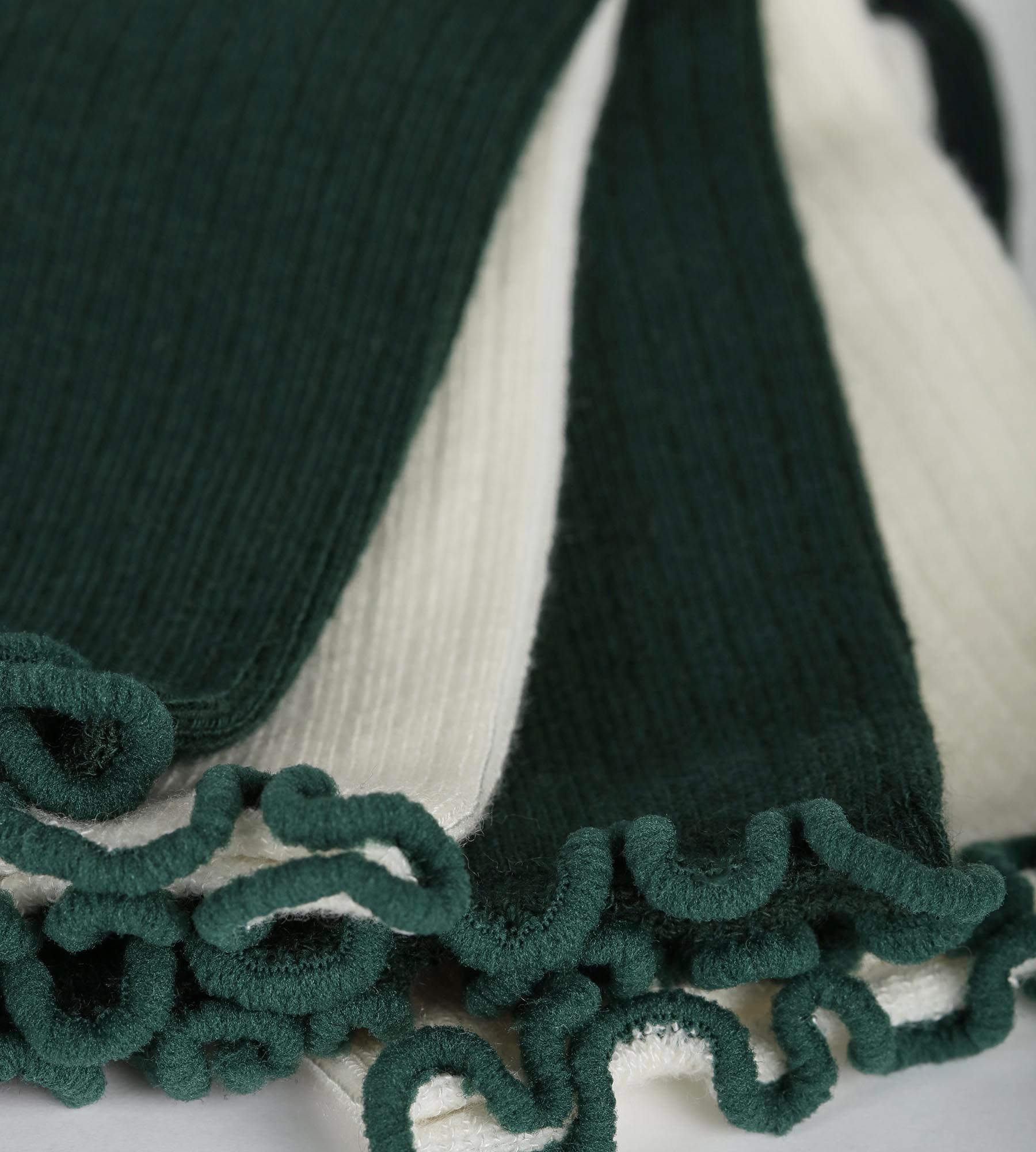 Duo doux et détail ondulé : le lot de 2 paires de chaussettes femme en coton Pin / Ivoire Dim Modal signe une silhouette décontractée, relevée d’une finition délicate à la cheville.