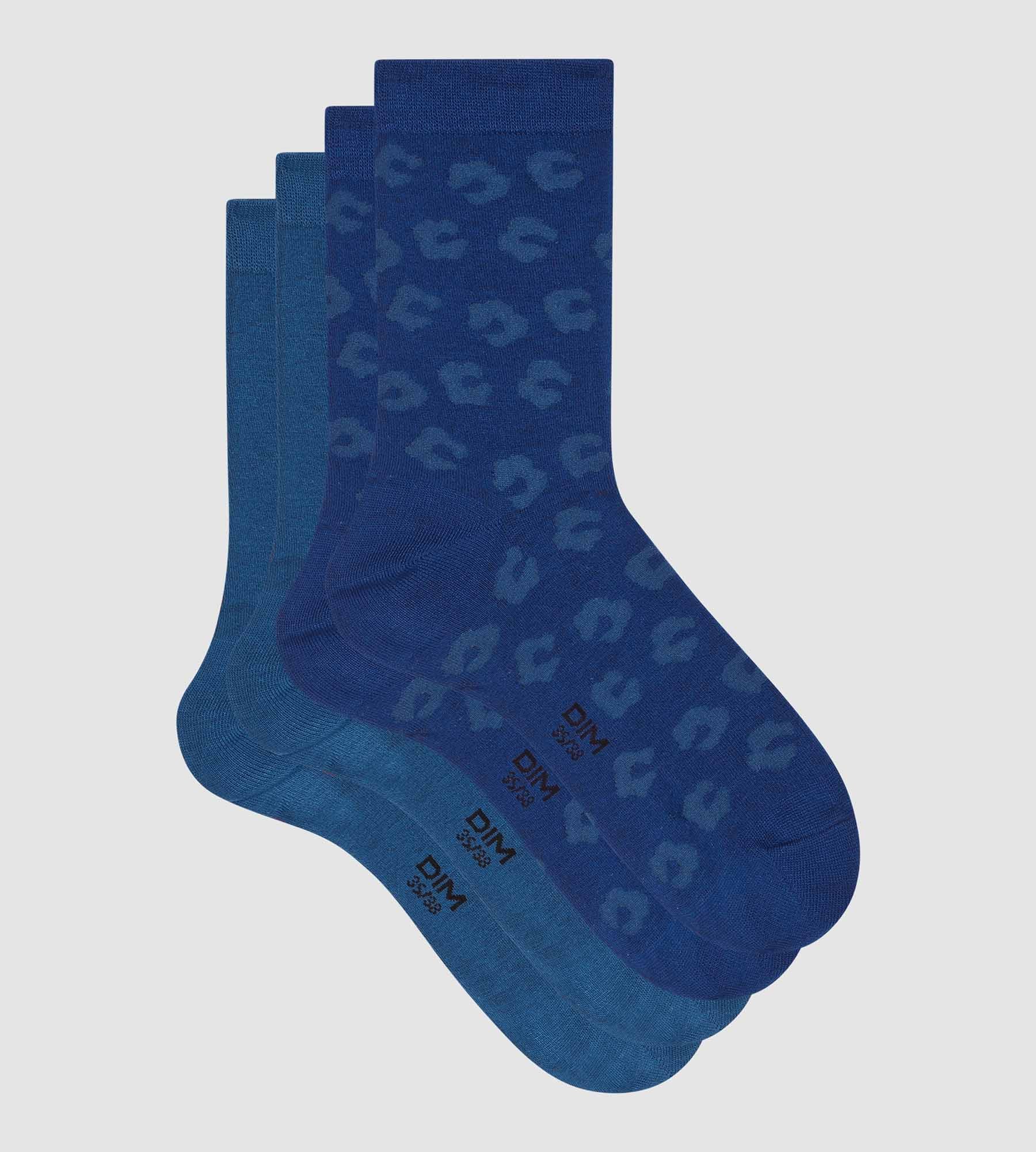 Lot de 2 paires de chaussettes femme viscose à fleurs Bleu Dim Bambou