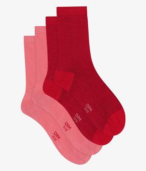 Ajoutez une note de fraîcheur et de dynamisme à vos tenues avec le lot de 2 paires de mi-chaussettes femme Dim Coton, dans les coloris Rose Éclat et Rouge Chérie !