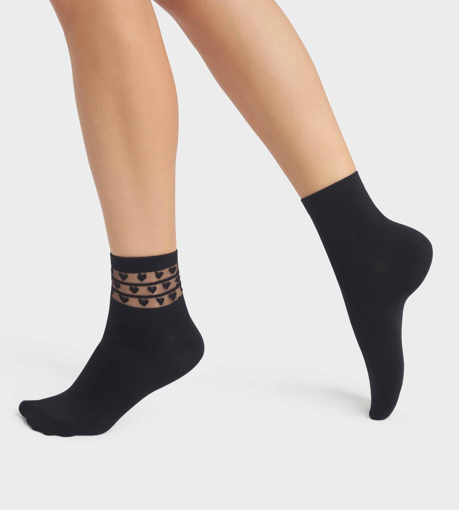 Lot de 2 paires de socquettes femme microfibre Noir à coeurs Dim Skin