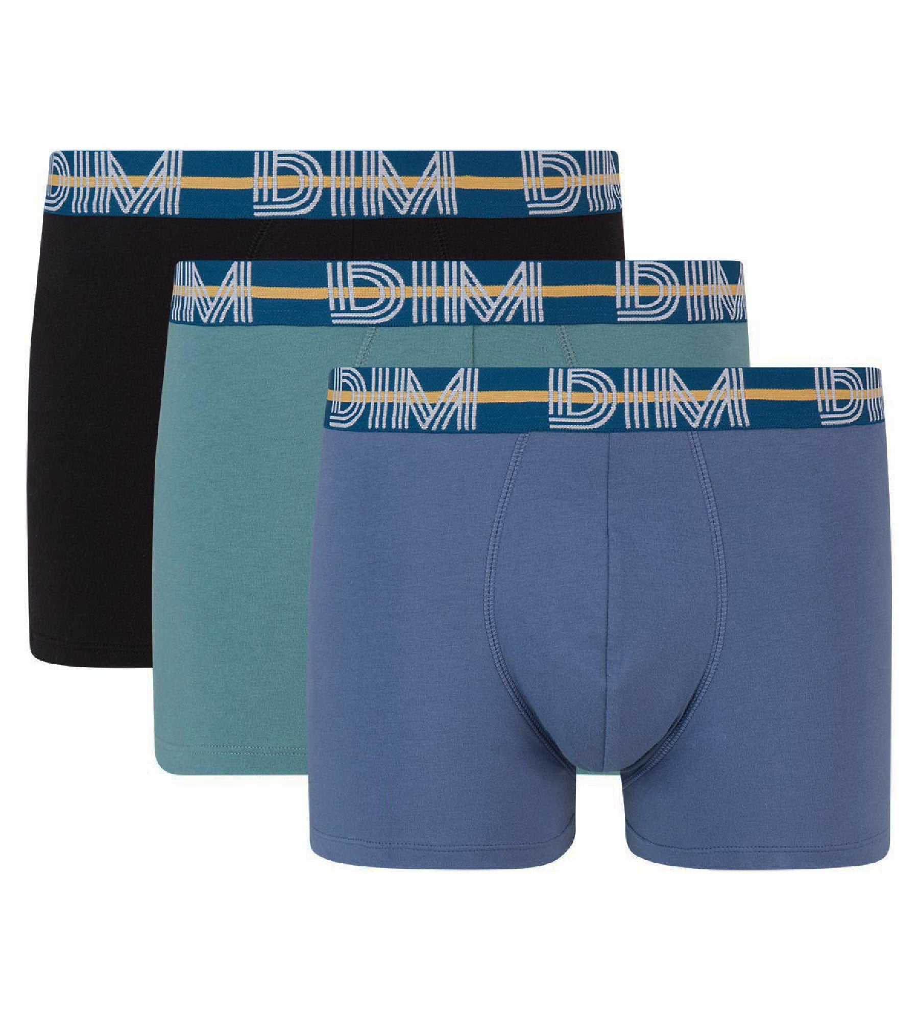 Lot de 3 boxers bleu noir coton stretch ceinture colorée Dim Powerful
