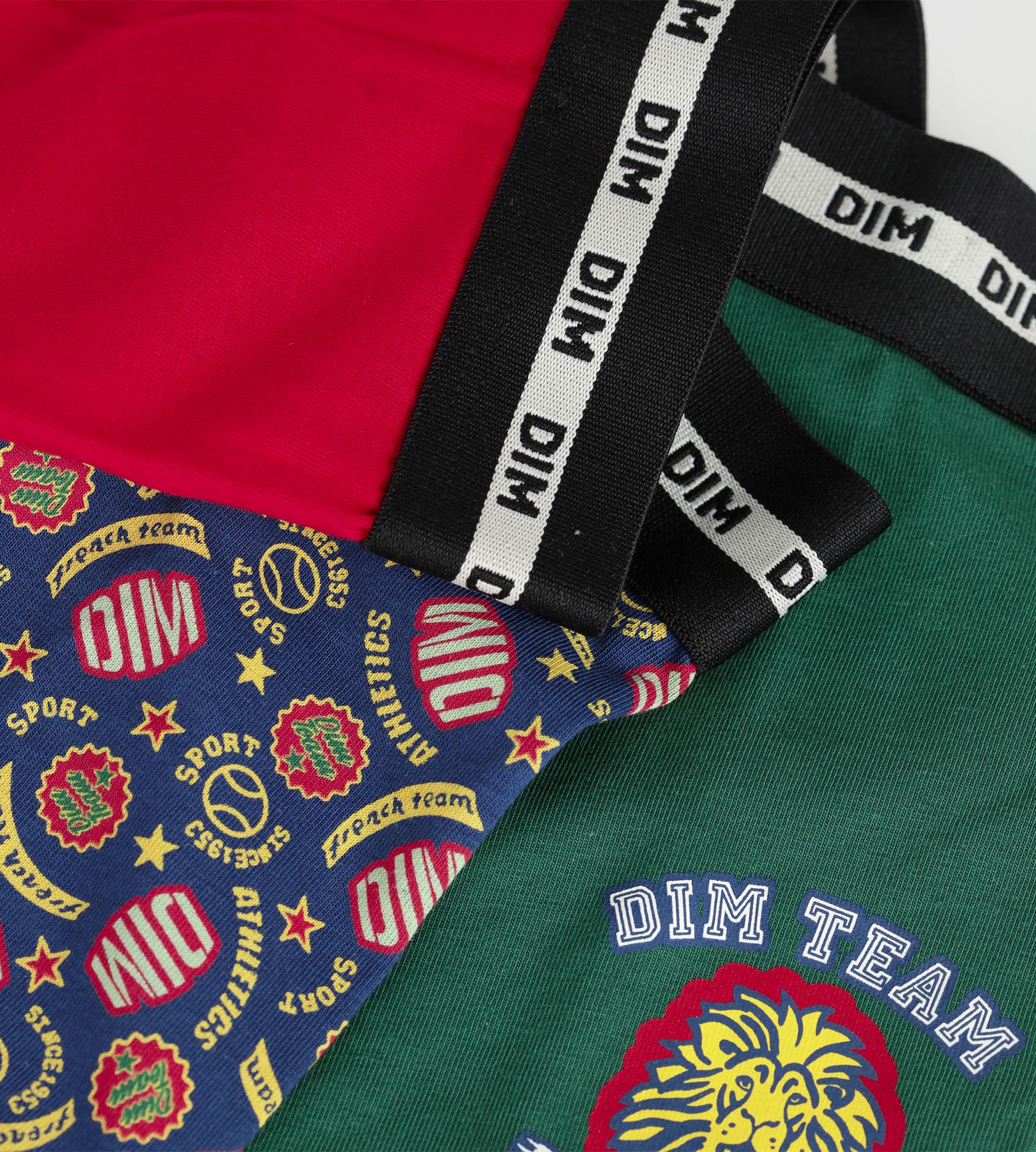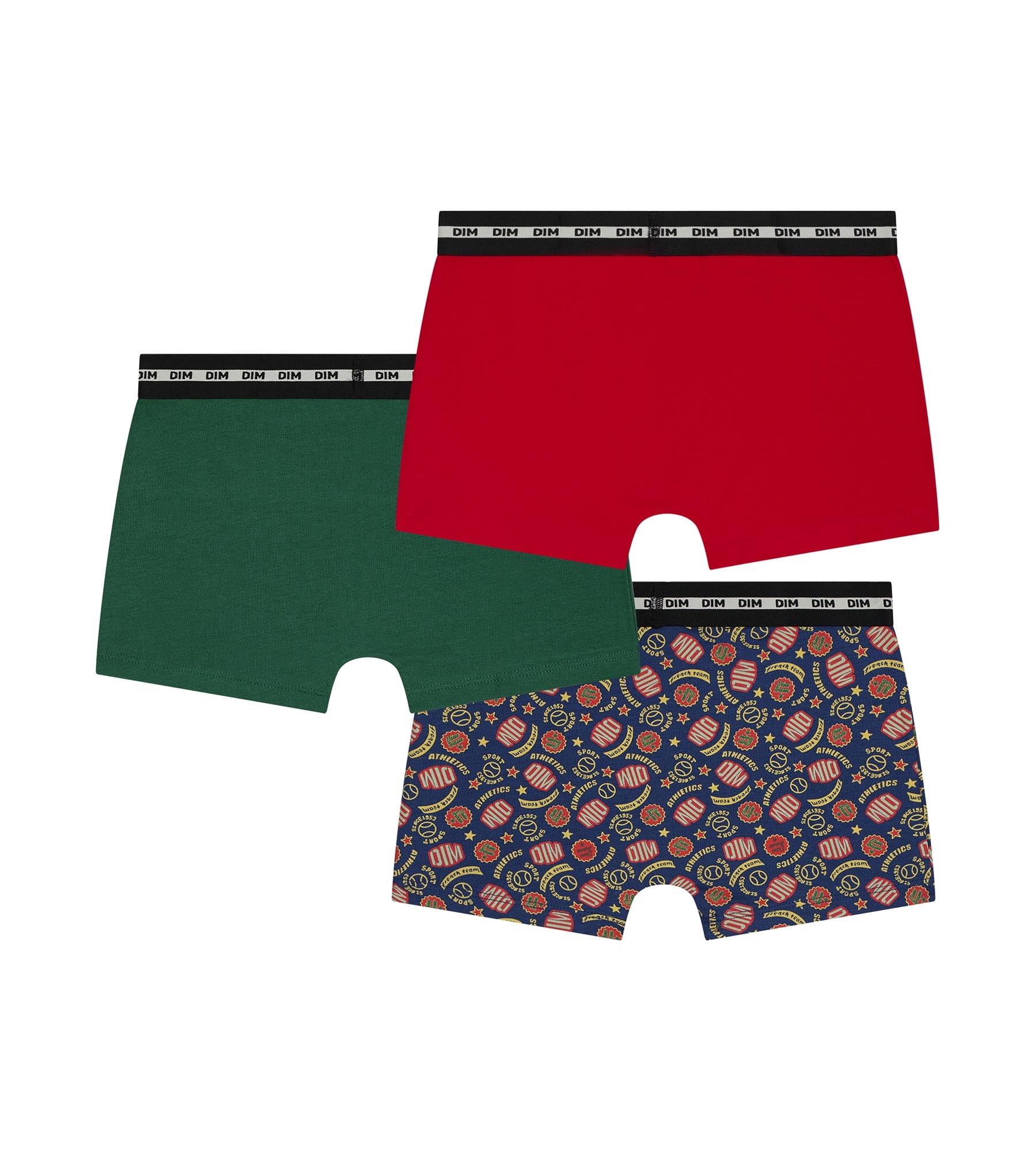 Lot de 3 boxers enfant Rouge Vert logotypés Dim Coton Stretch
