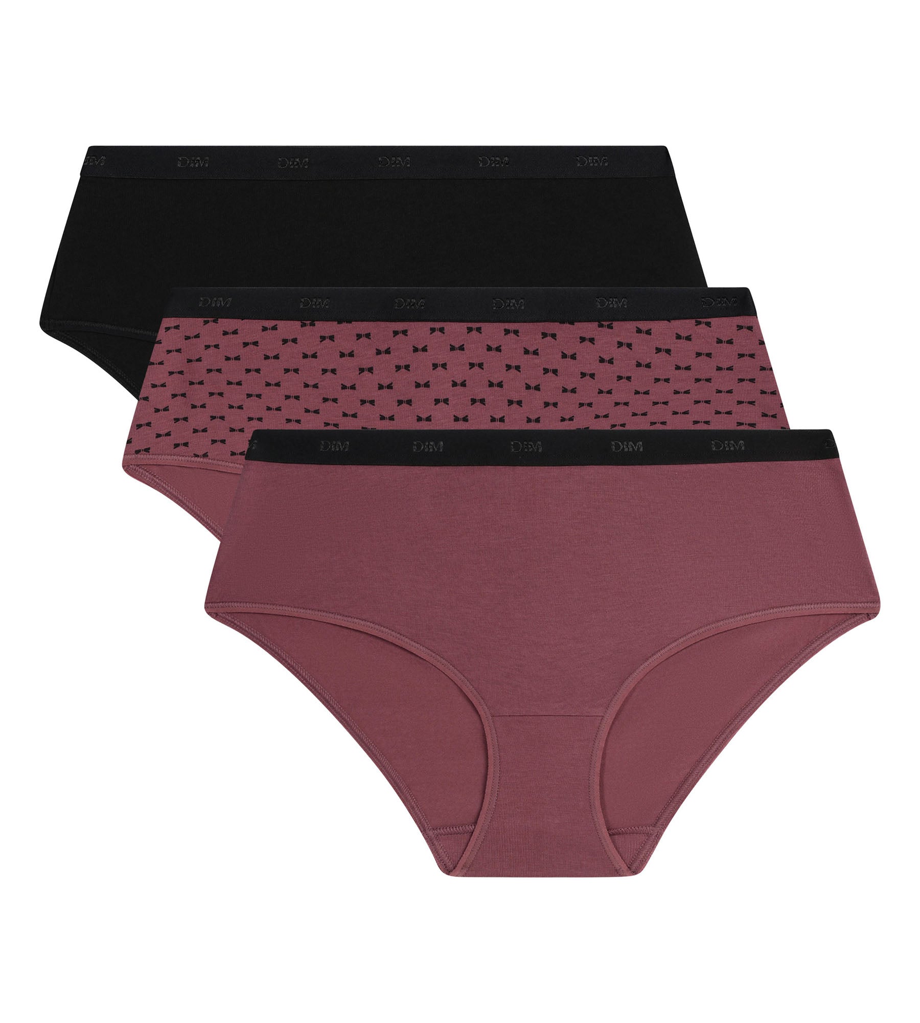 Affirmez votre style en douceur avec le lot de 3 boxers femme Les Pockets en coton stretch aux teintes Noir Prune élégantes.