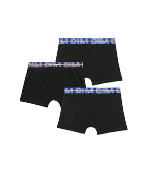 Lot de 3 boxers garçon coton stretch ceinture contrastée Noir EcoDim