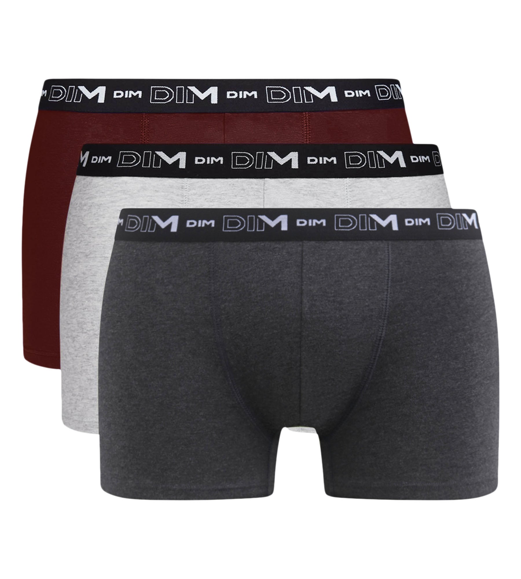 Choisissez la sobriété avec le lot de 3 boxers homme Dim Coton Stretch Cendre en maille confortable et nuances feutrées.