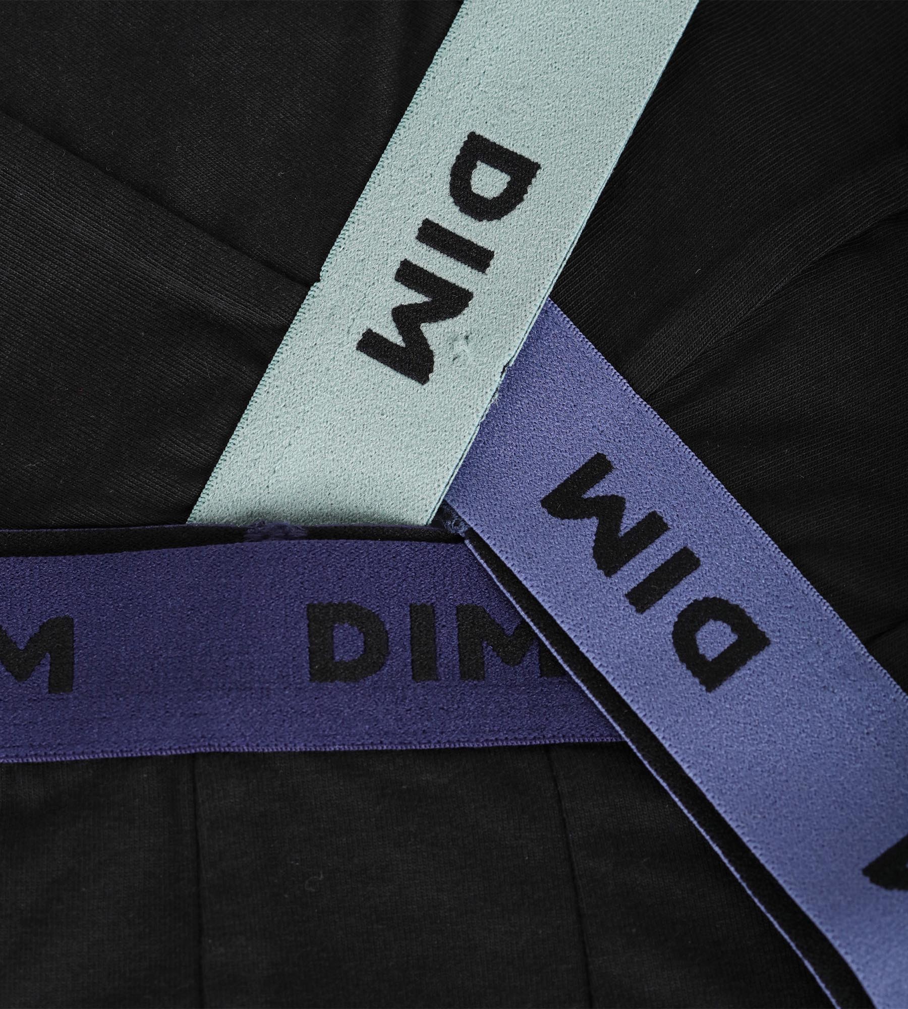 Pensé pour ceux qui aiment les basiques efficaces, ce lot Mix & Colors mise sur un noir profond relevé par trois ceintures contrastées qui changent tout. Le coton stretch reste agréable toute la journée, même quand ça bouge, et conserve un maintien régulier sans serrer. Chaque ceinture apporte une ambiance différente : Flocon pour la touche claire, Lila pour un côté plus doux, Bleu Foncé pour un look plus classique. C’est un lot pratique à glisser dans un tiroir pour alterner facilement entre sobriété et nuance, tout en profitant du confort simple des boxers dim homme.