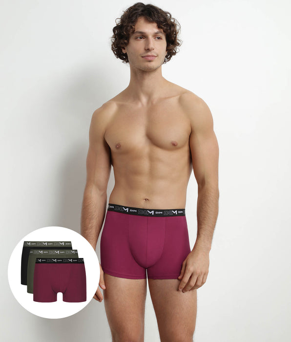 Lot de 3 boxers homme Noir Kaki Rouge Dim Coton Stretch