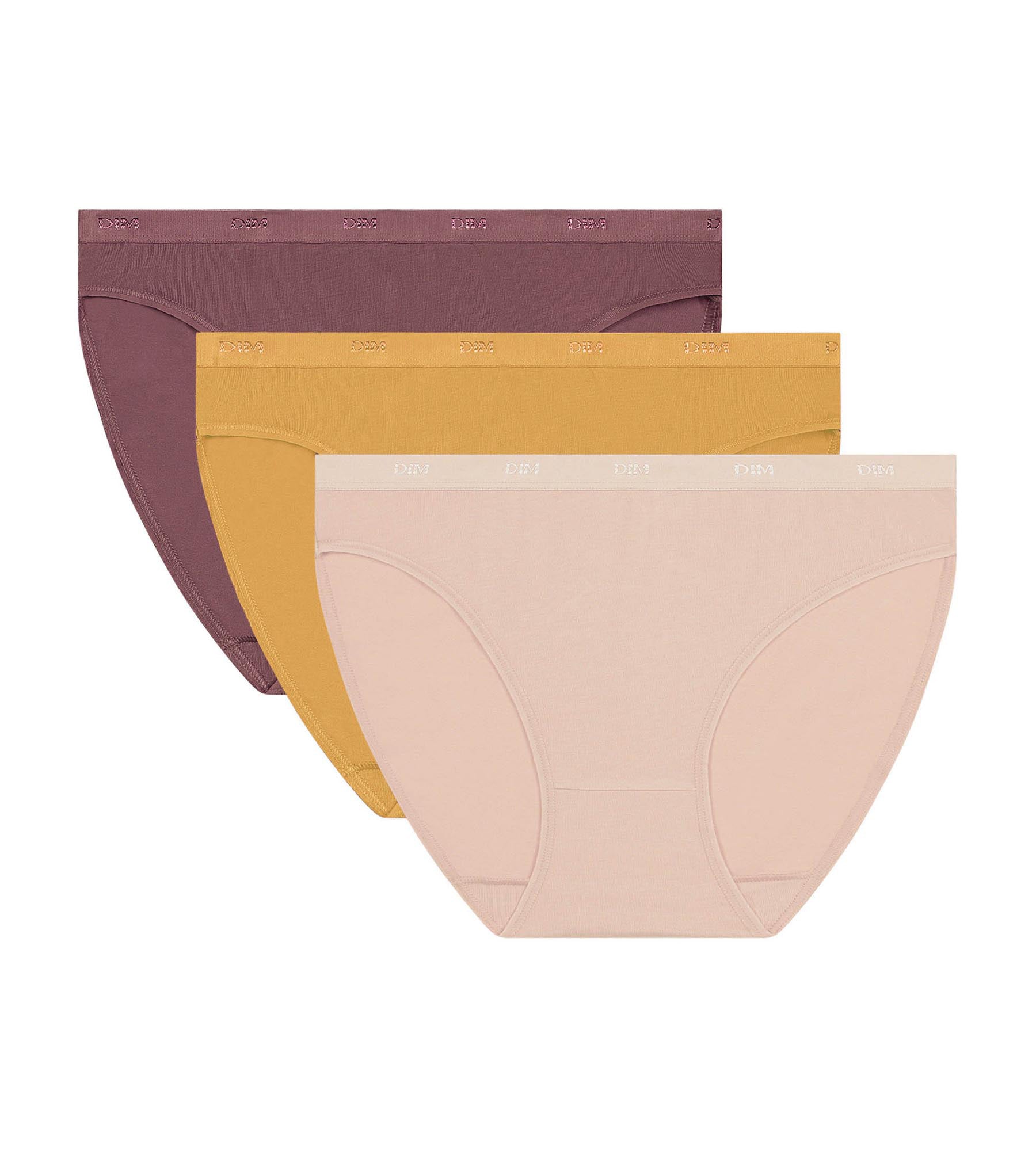 Adoptez une allure lumineuse avec le lot de 3 culottes femme en coton stretch Les Pockets EcoDim, aux teintes Jaune, Rose et Marron !