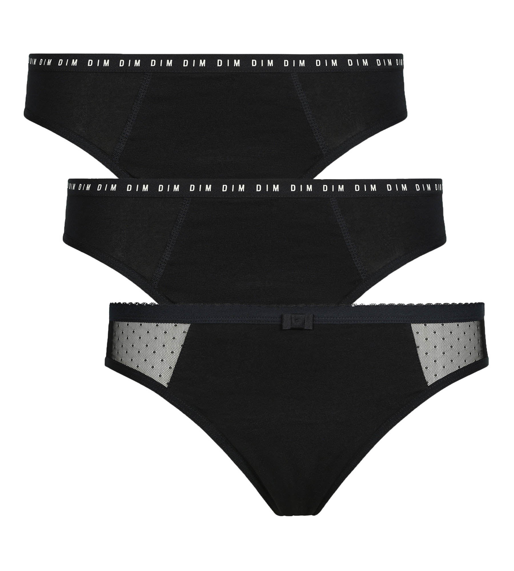 Affrontez vos règles avec confort et confiance grâce au lot de 3 culottes menstruelles pour flux moyen Dim Protect en coton bio Noir !